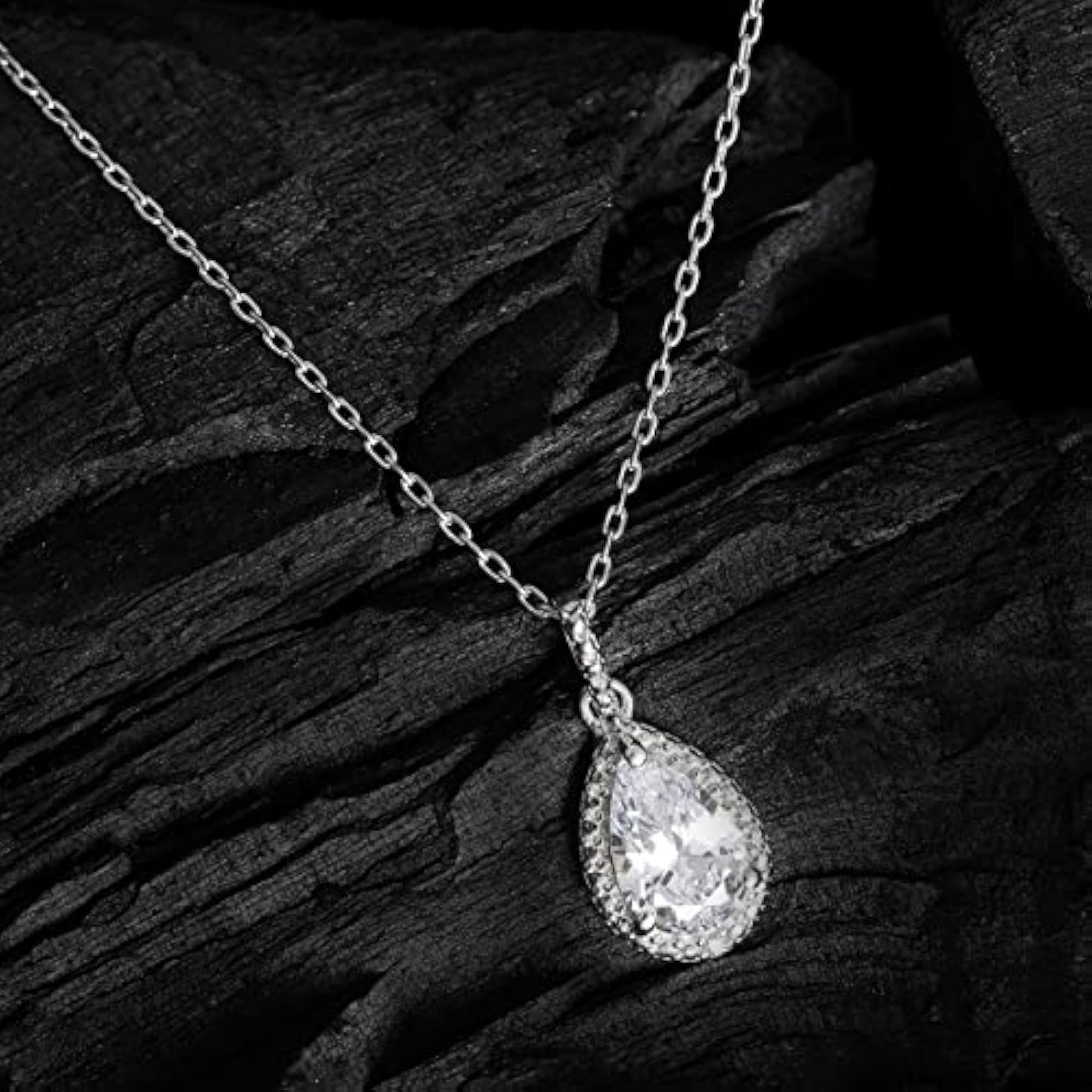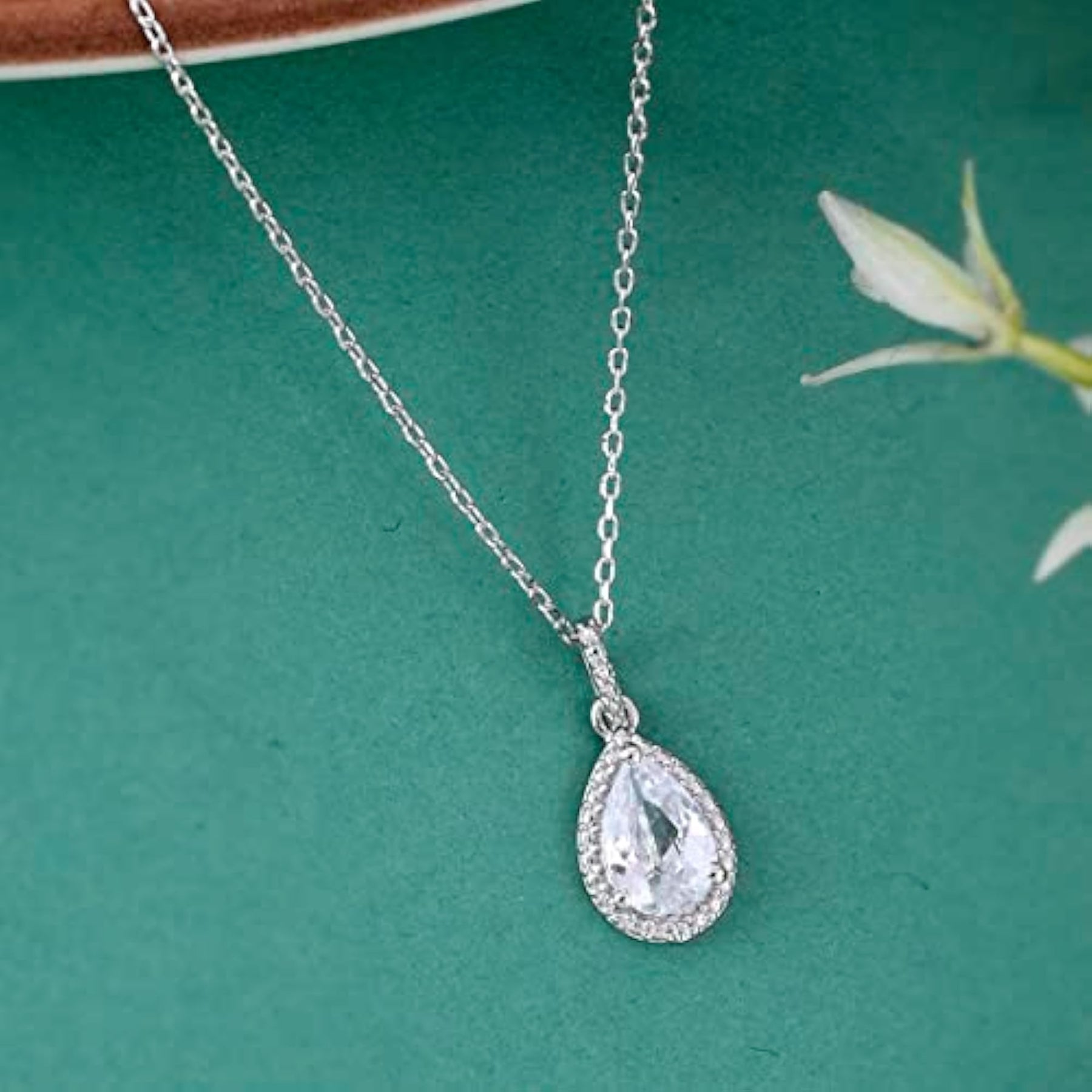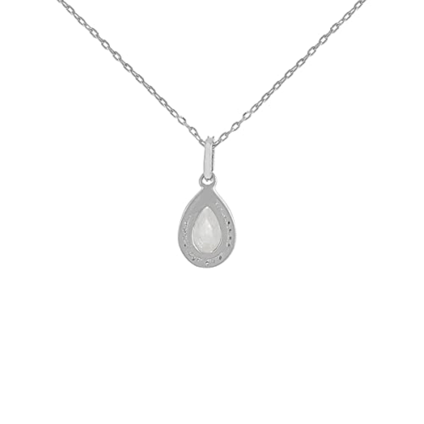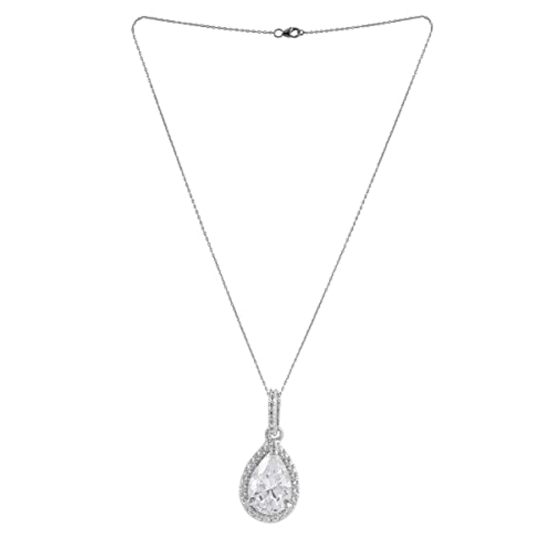 Elegant 925 sterling silver pendant featuring American diamond CZ and pearl shaped design. Includes a matching chain.
