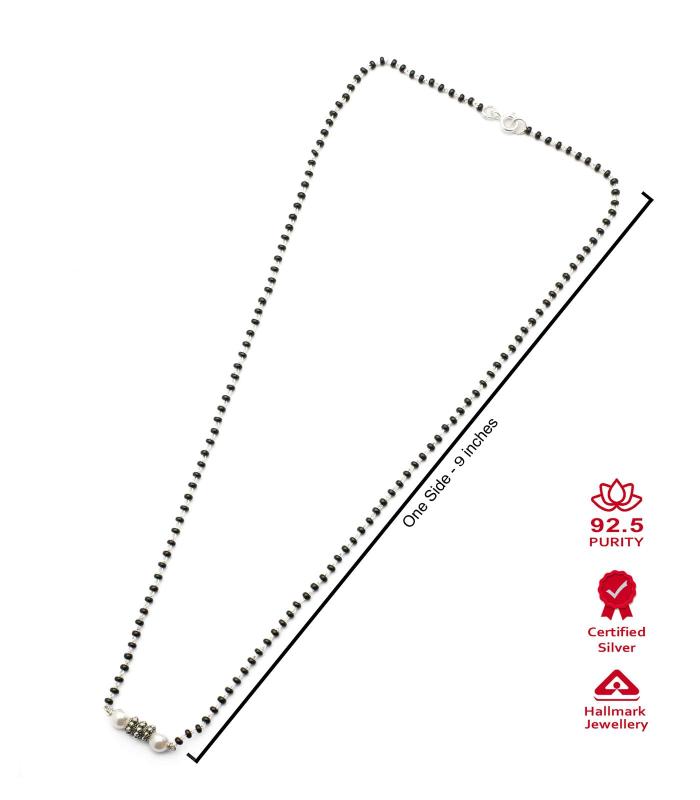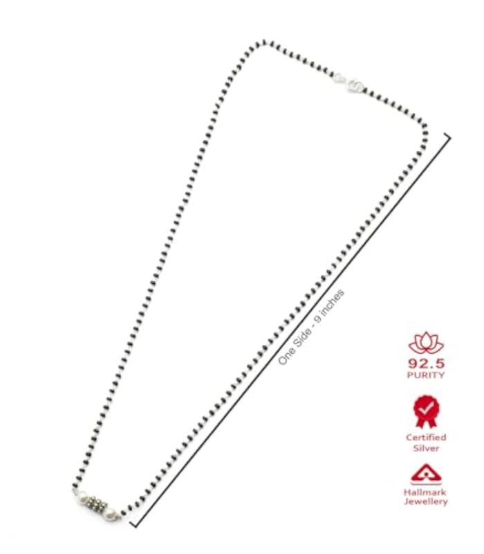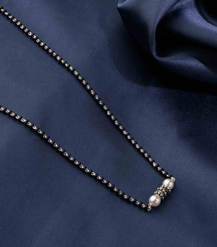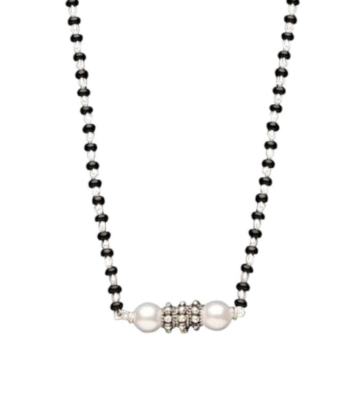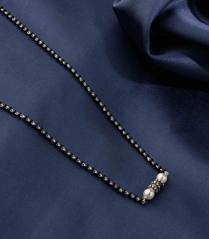 Beautiful and elegant mangalsutra featuring dainty pearls and black beads. Made of 925 sterling silver, perfect gift for your wife.