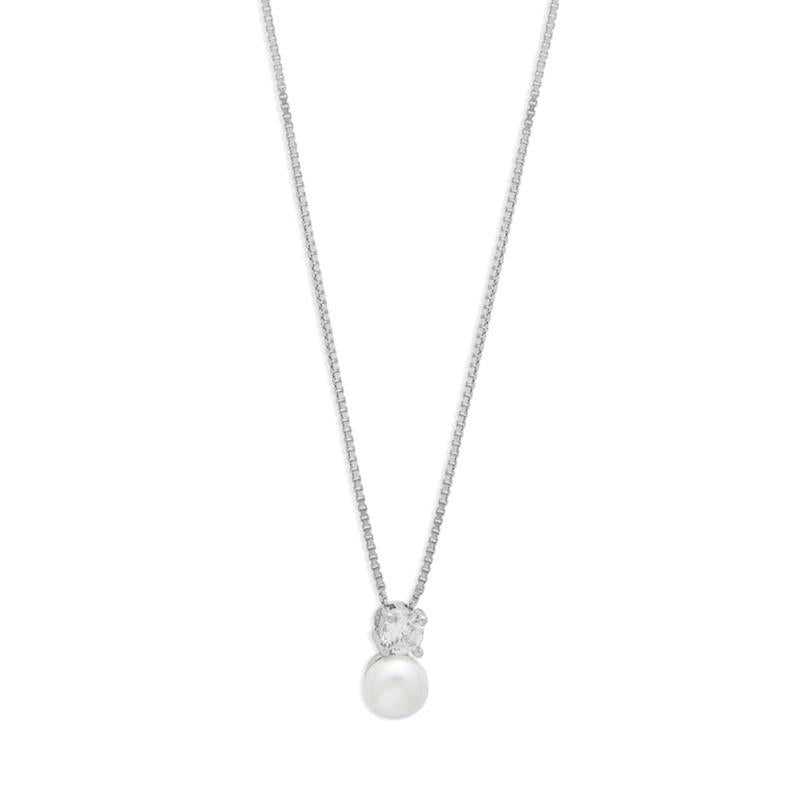 Elegant solitaire necklace featuring a lustrous freshwater pearl set in rhodium-plated 925 sterling silver.