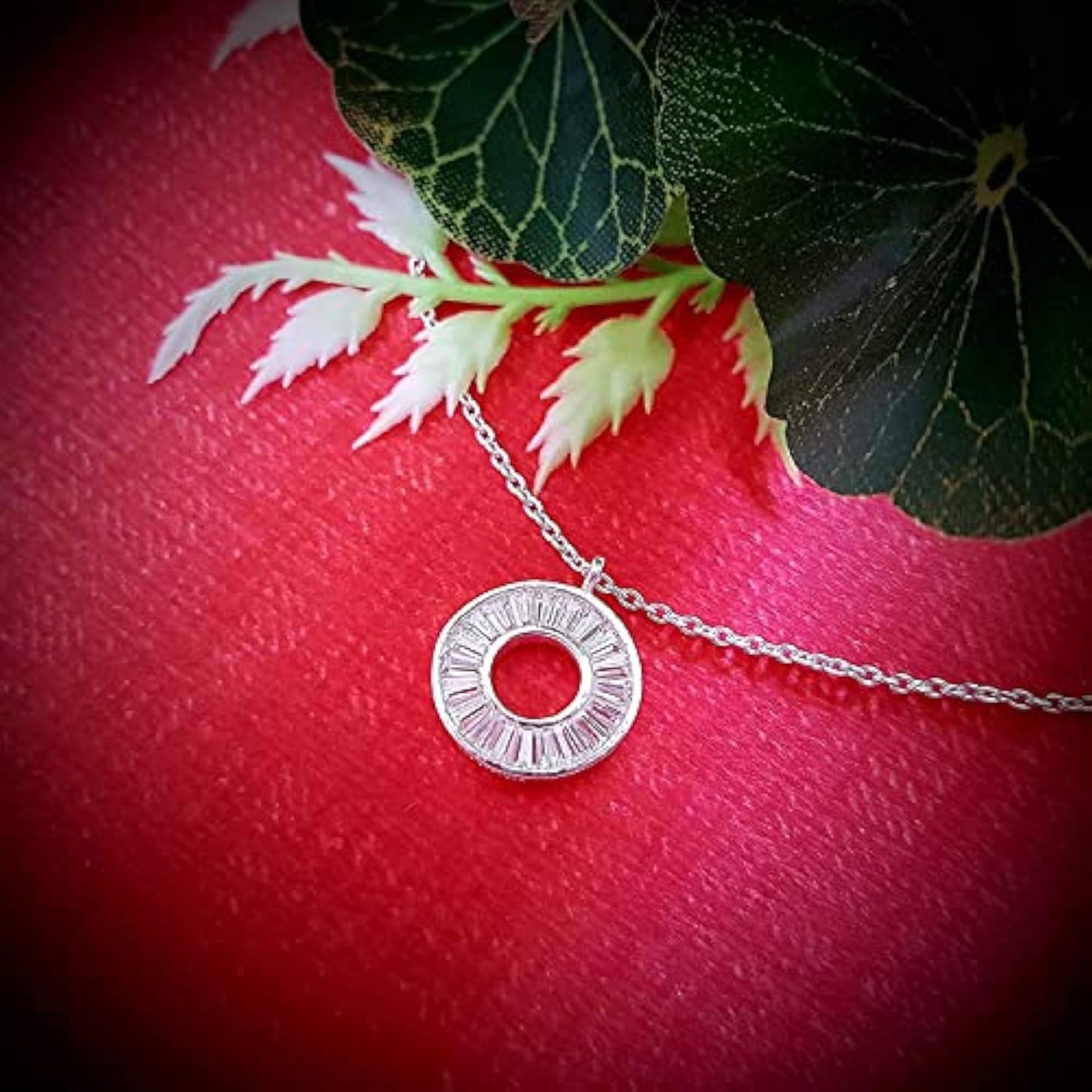 This elegant pendant is made of 92.5% sterling silver and comes with a matching chain. Perfect for daily wear or special occasions.