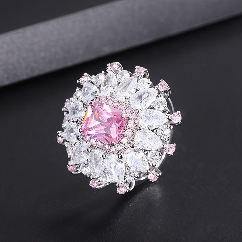 This stunning jewelry set includes a pair of auricular needle earrings, a necklace pendant, and an adjustable ring, all made of 925 sterling silver and featuring synthetic zirconia insets. The perfect gift for Mother's Day or any special occasion.