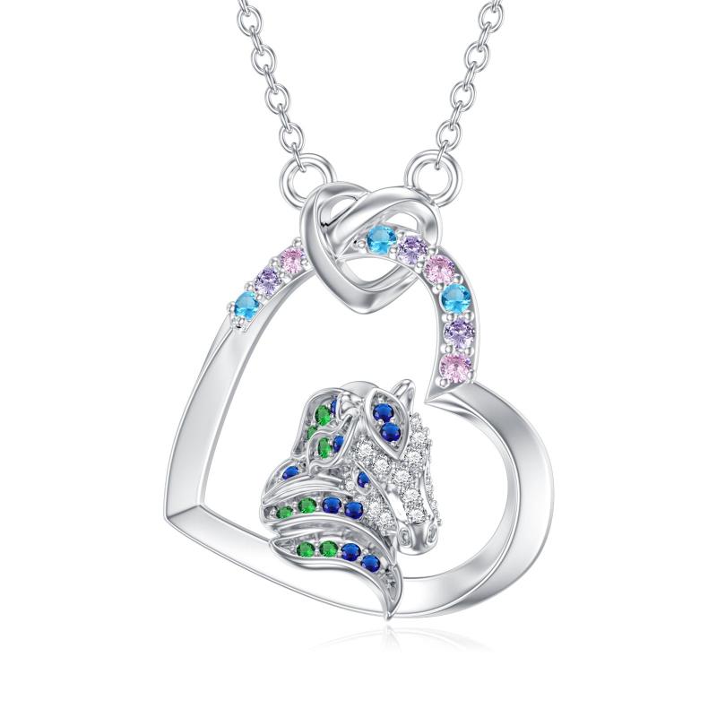 This elegant necklace features a sterling silver horse and heart pendant design that adds a touch of charm and sophistication to any outfit.