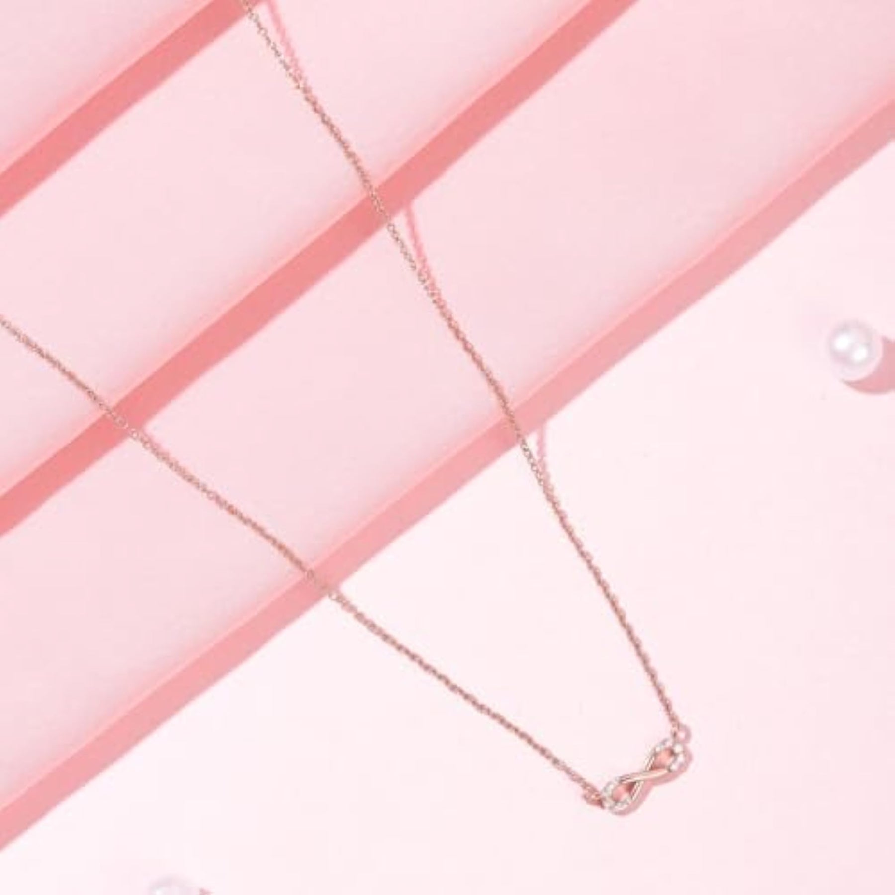 This stunning necklace features an infinity symbol intertwined with a rose design, crafted from 925 sterling silver. It is a special gift for girls with a 925 stamp of authenticity.