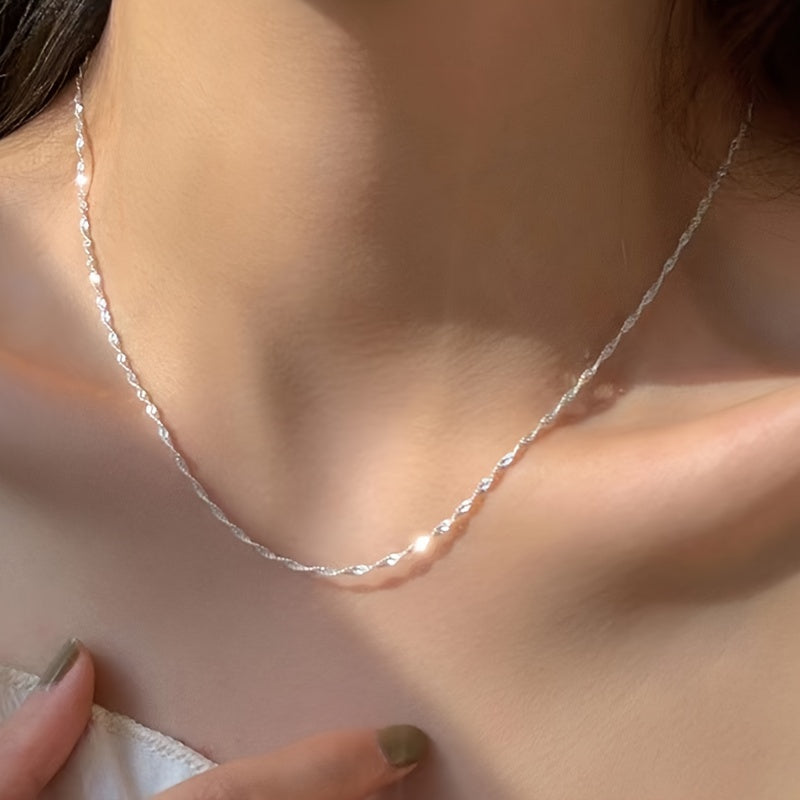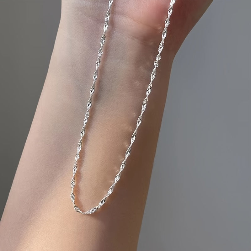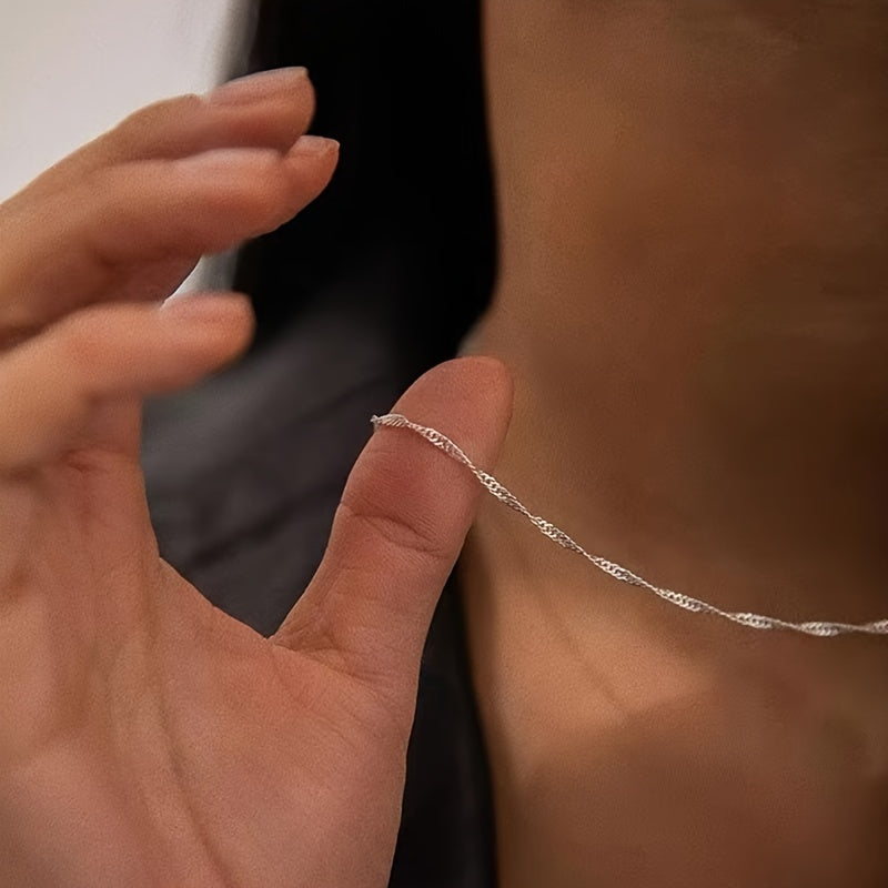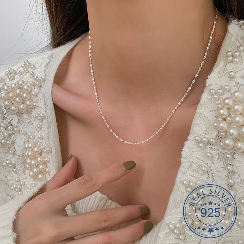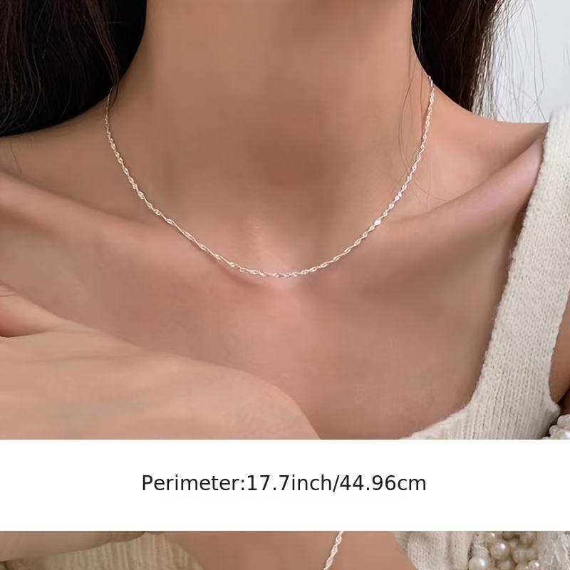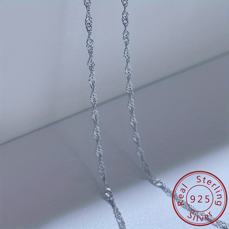 This 925 sterling silver necklace features a water wave design with a thin stacked chain. Perfect for everyday wear or as a gift for someone special.