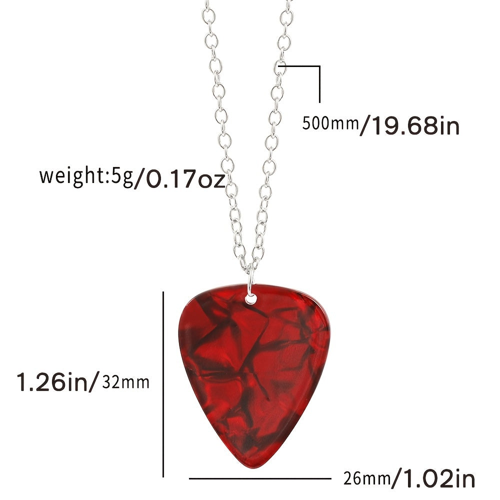 This guitar pick necklace features a red heart design inspired by Eddie Munson. Made of high-quality acrylic, this necklace is perfect for music lovers and guitar enthusiasts.