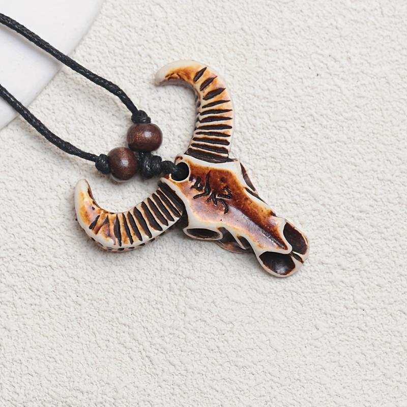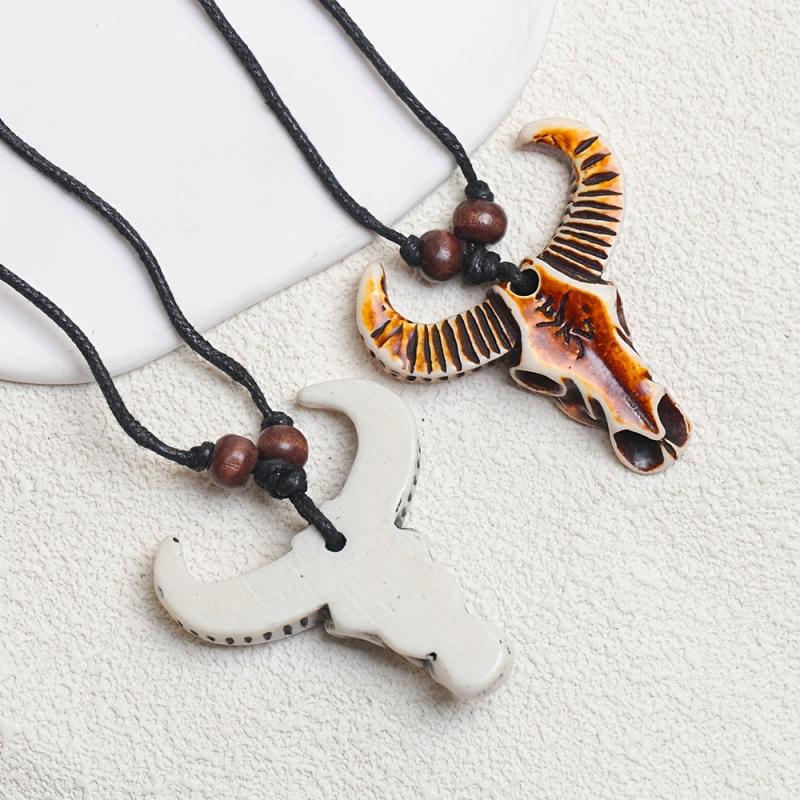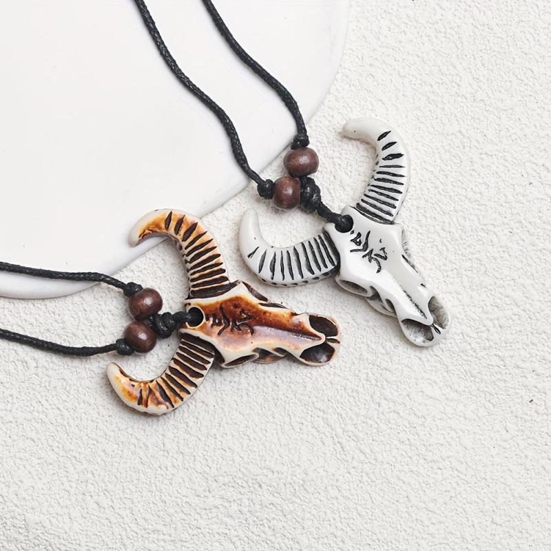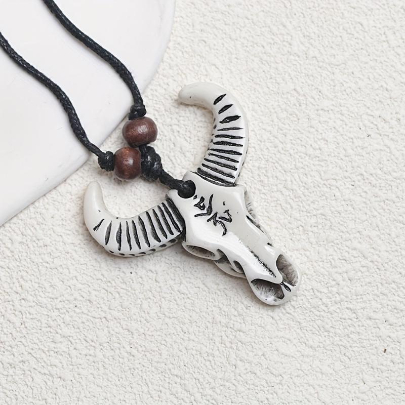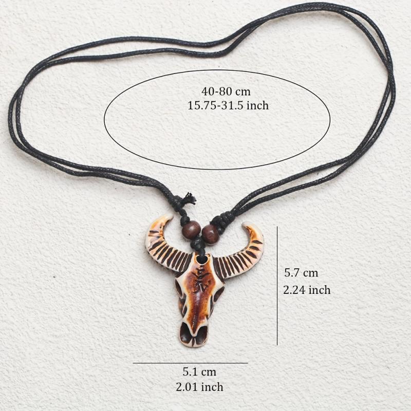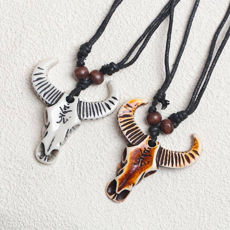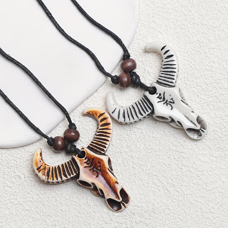 This stylish couple necklace features an adjustable size cow skull pendant with retro rope hand-woven details, perfect for a hip hop look.