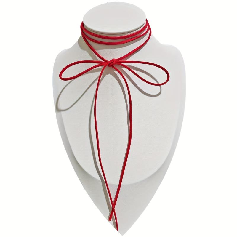 Elevate your casual attire with this tie neck faux leather necklace. The lace design adds a trendy touch to your outfit.