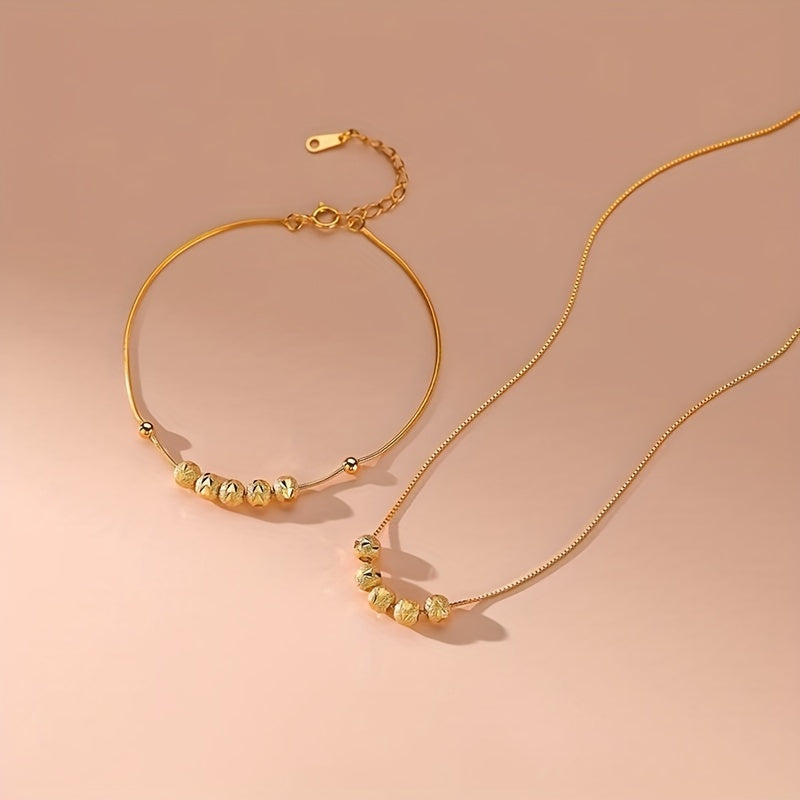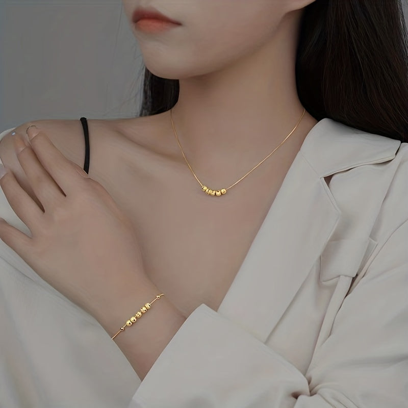 This classic jewelry set features an adjustable pendant necklace and a matching chain bracelet. Perfect for adding a touch of elegance to any outfit.