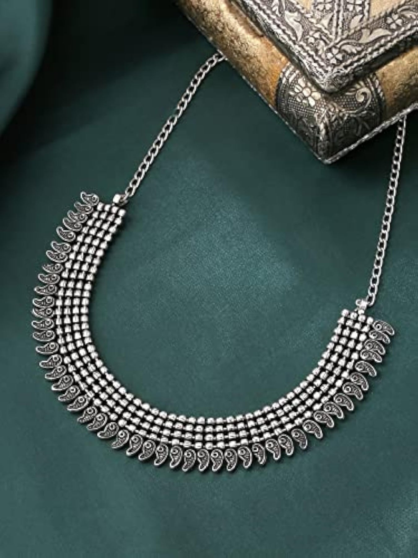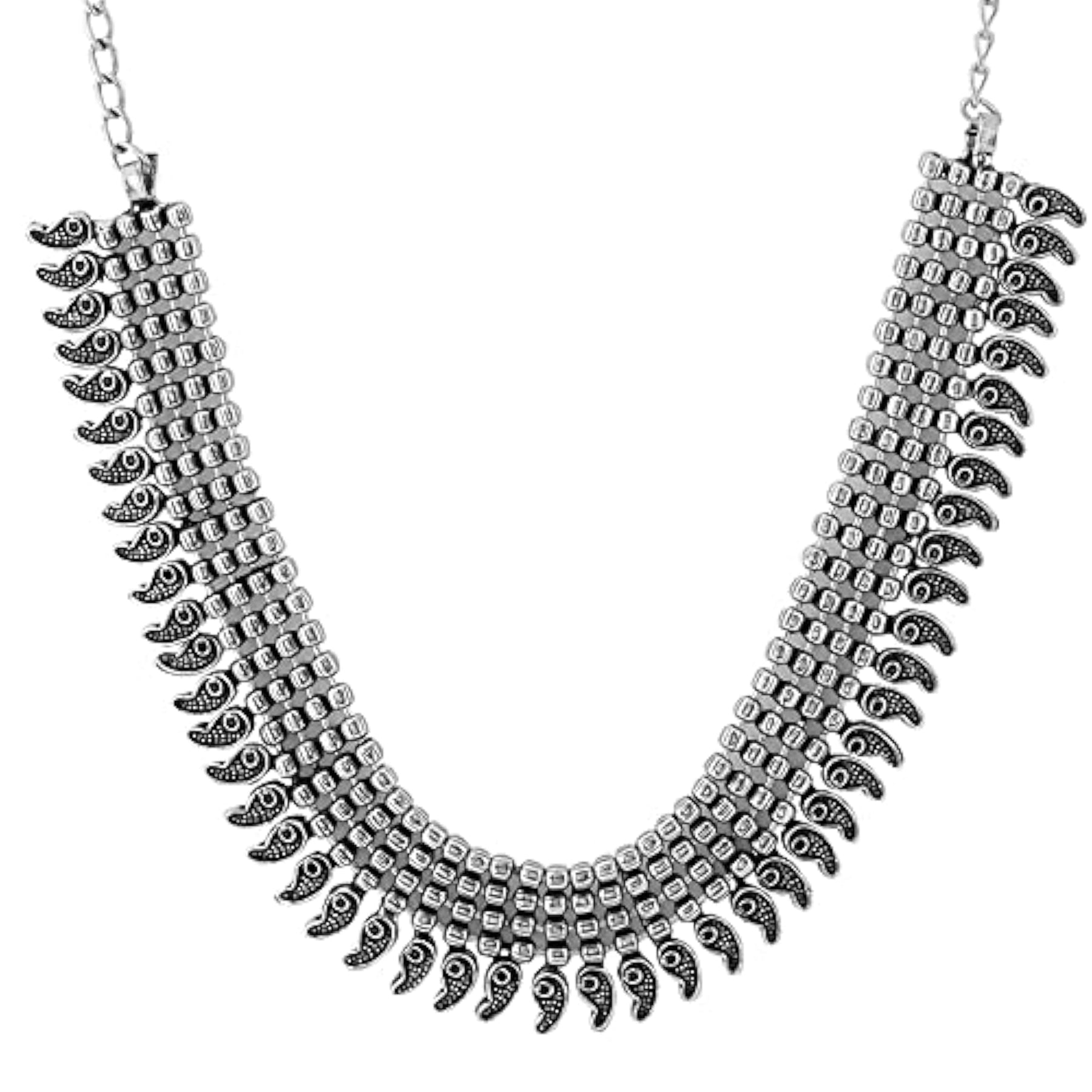 Elegant and versatile choker necklace with adjustable length and oxidised beads studded design.