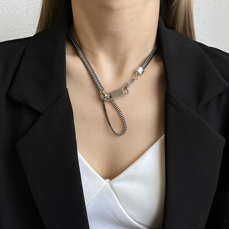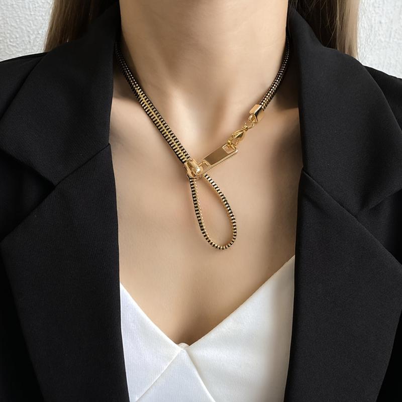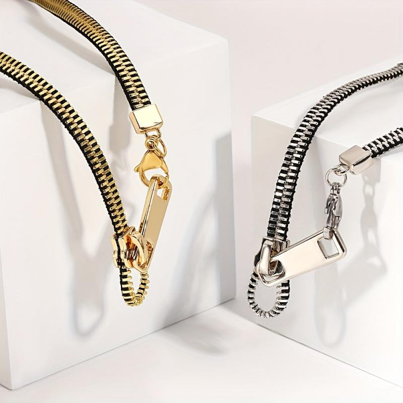 Stand out with this unique Stainless Steel Zipper Necklace for men and women. Available in gold and silver, this adjustable piece is perfect for hip hop and pop enthusiasts.