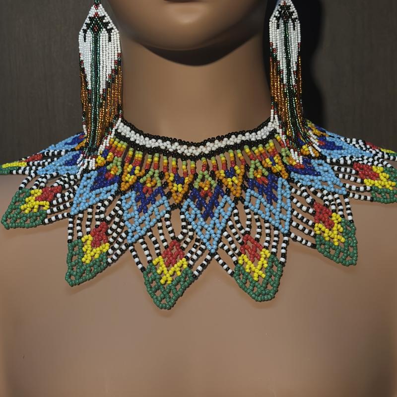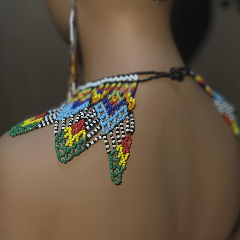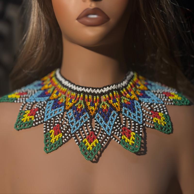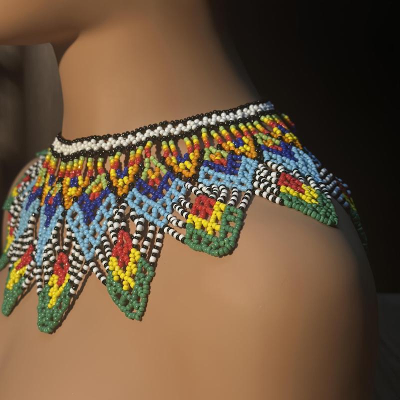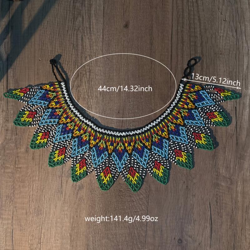 This bohemian necklace features multicolor glass seed beads with a tassel pendant, perfect for women born in June or as a Pride Month gift. The ethnic woven design adds a casual and artistic touch to any outfit.