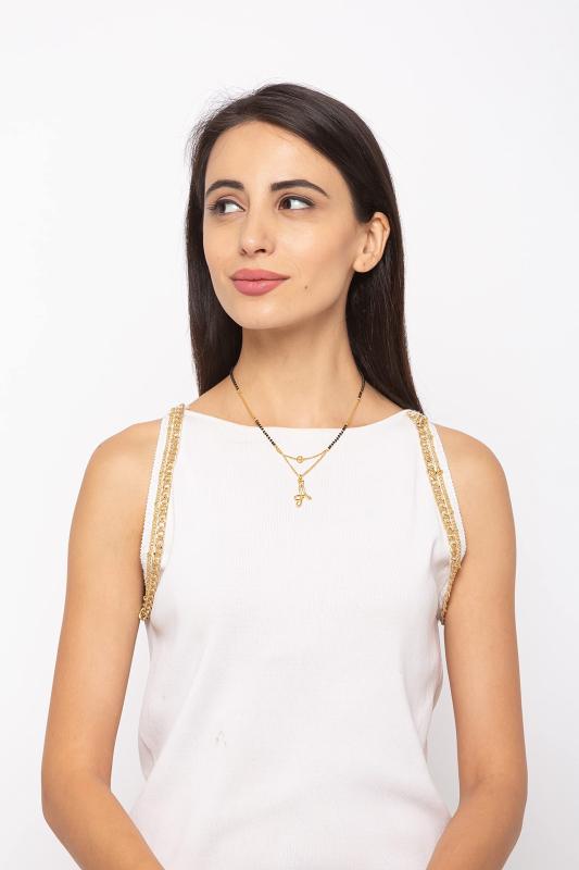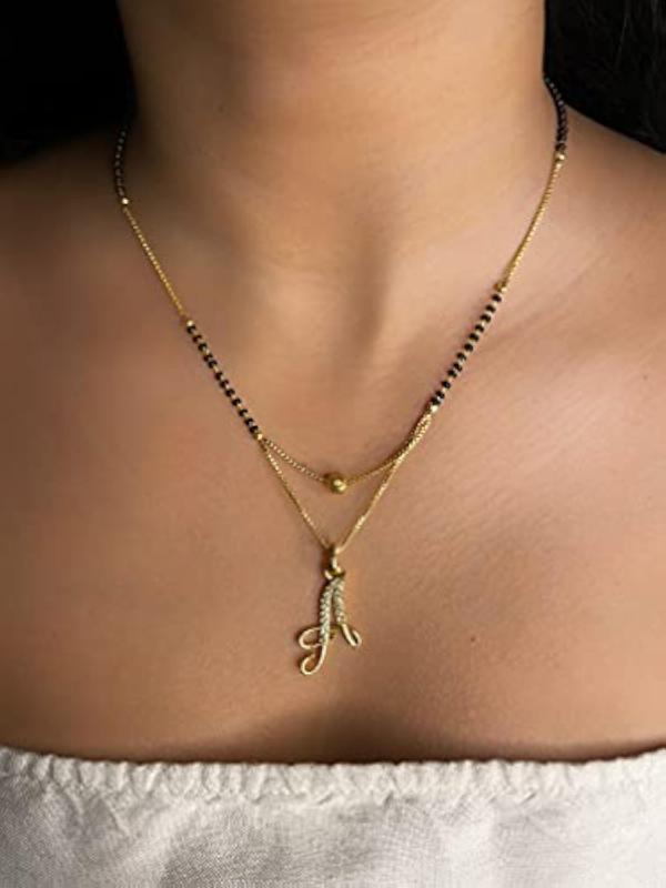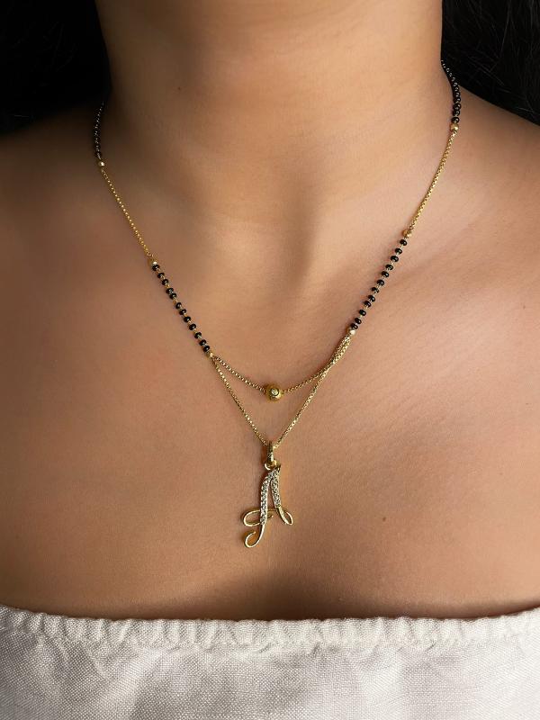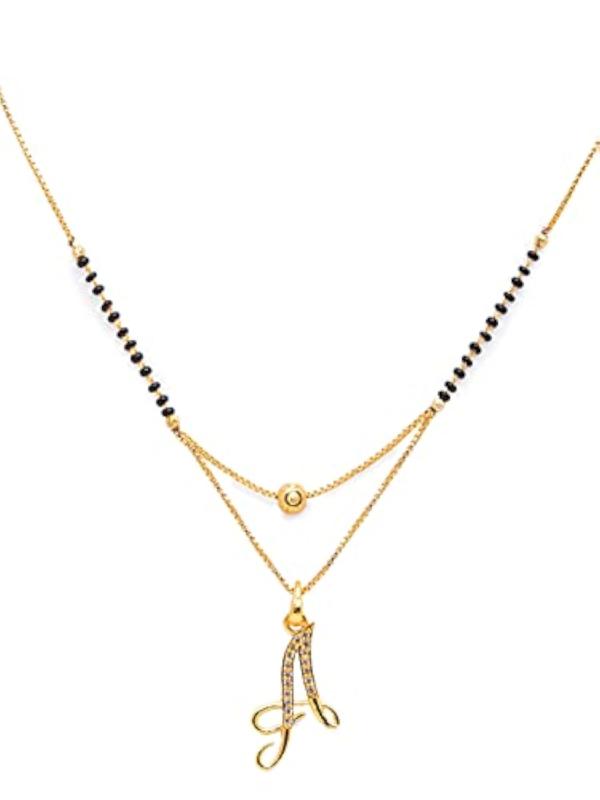 Stay trendy with this latest design American Diamond personalized mangalsutra featuring the letter A. Perfect for everyday wear.