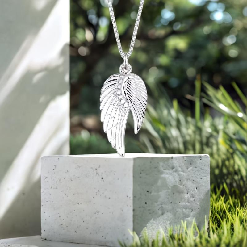 Elegant and lightweight pendant necklace crafted from pure S925 silver, showcasing angel wings design. Ideal for daily wear and makes a thoughtful holiday gift for your girlfriend.