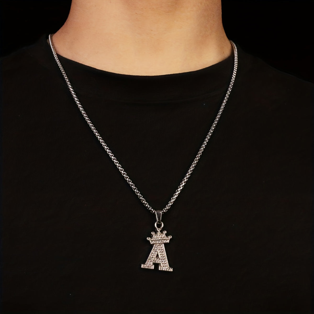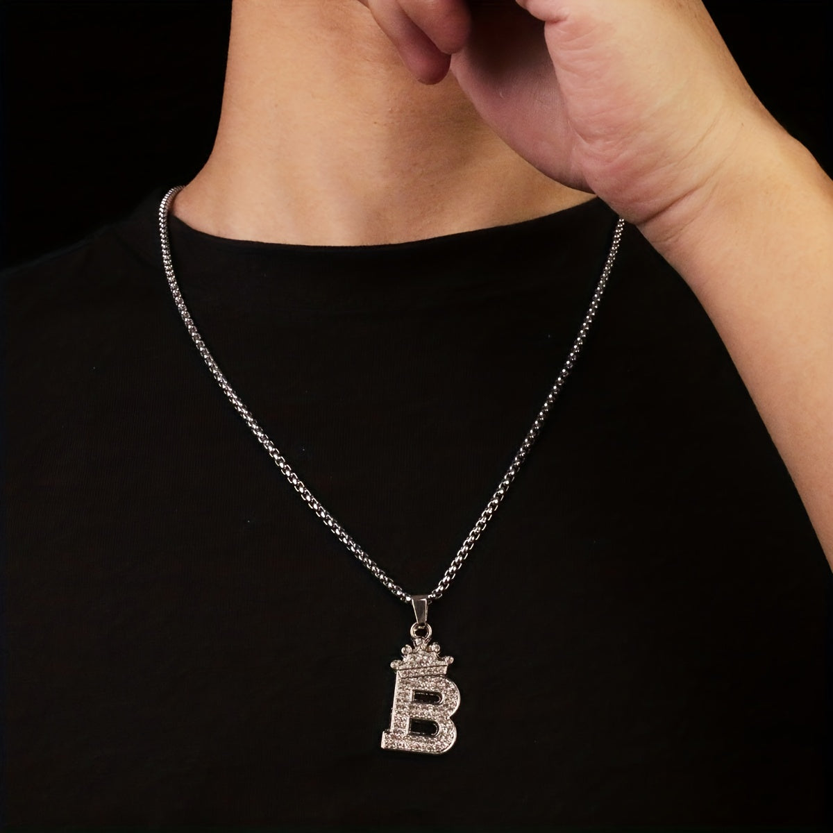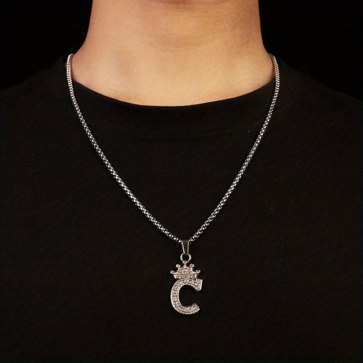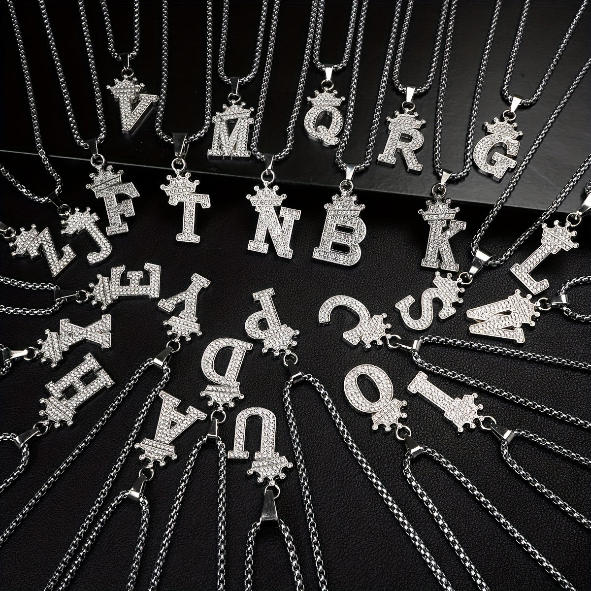 Show off your hip hop style with this silver plated chain necklace featuring a crown letter pendant.