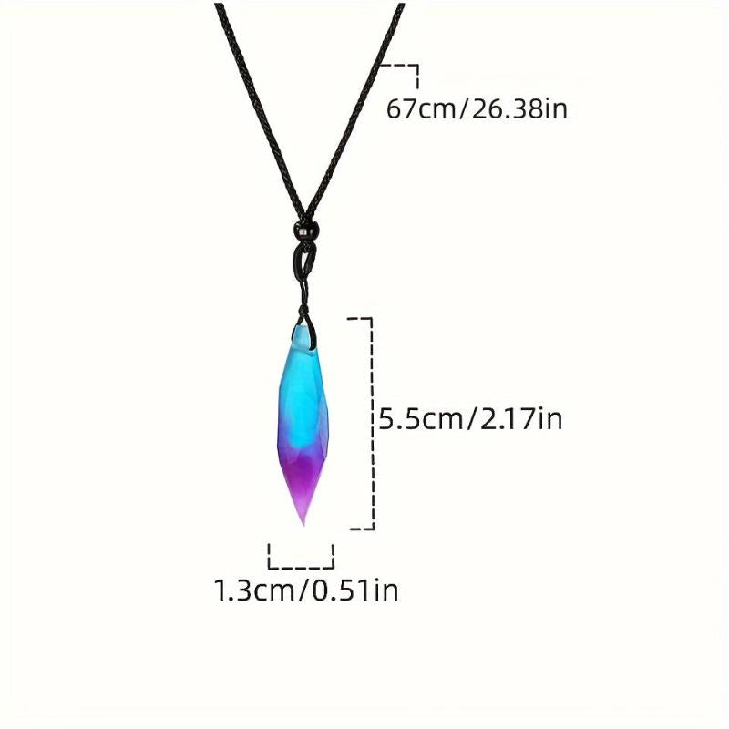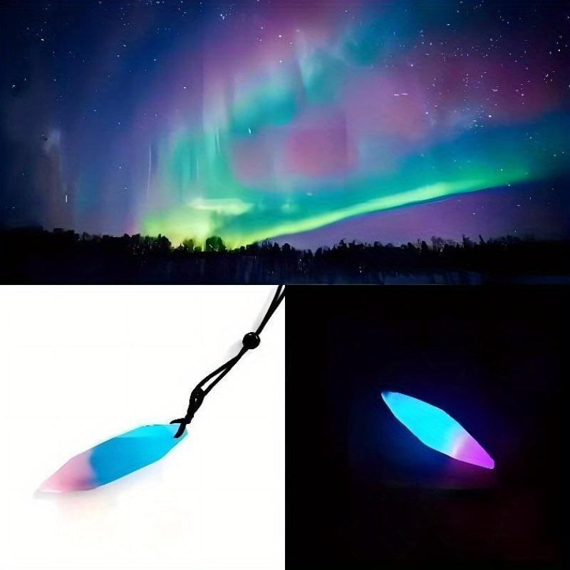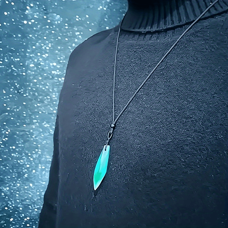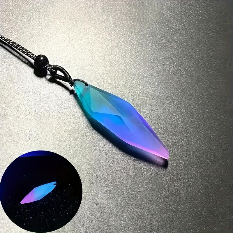 This pendant necklace features a glamorous starry sky design with an irregular rhombus shape. The resin material creates a luminous effect resembling the aurora lights, making it a unique and eye-catching accessory for men.