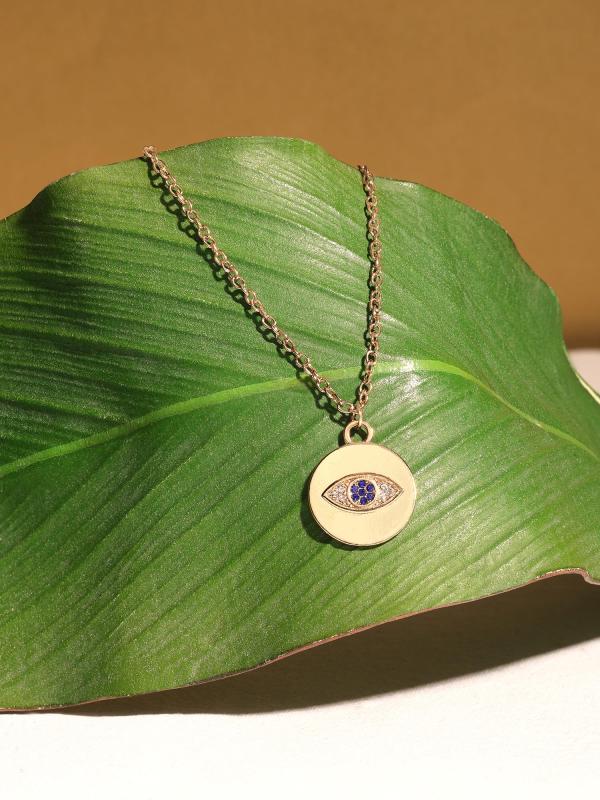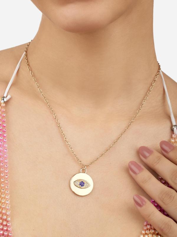 Gorgeous evil eye pendant with Austrian diamonds for a contemporary look. Perfect accessory for women.