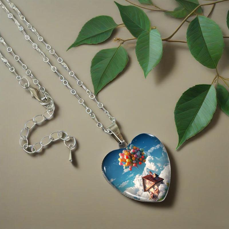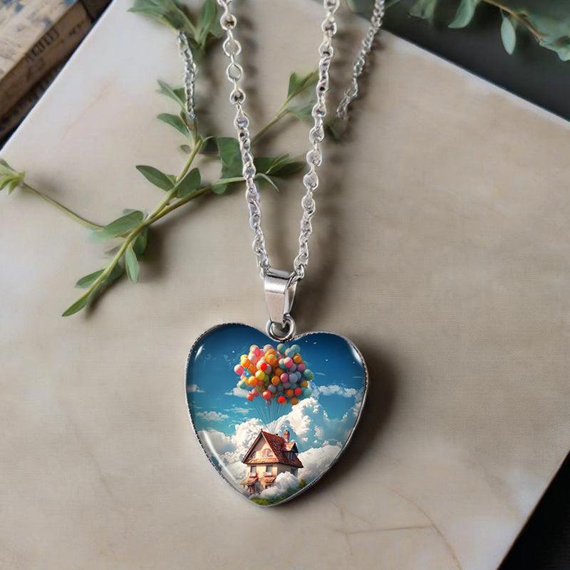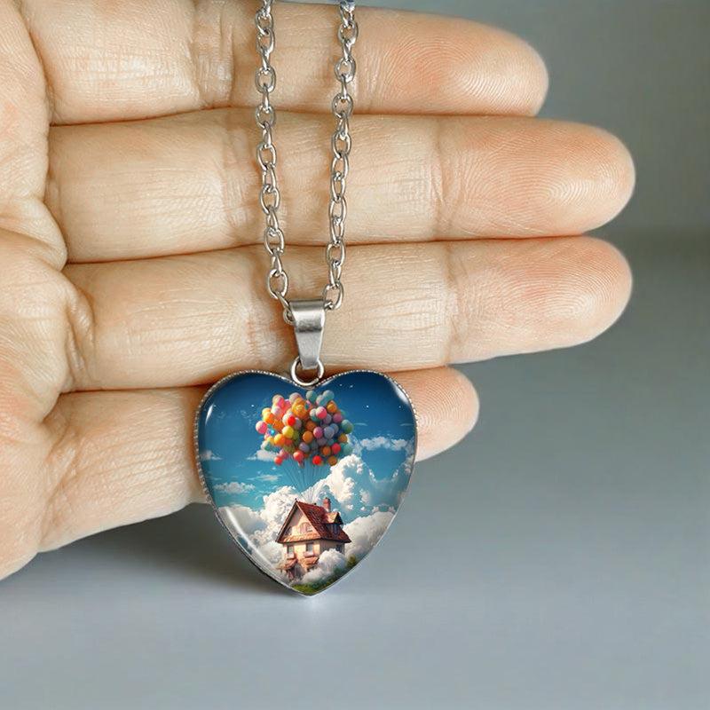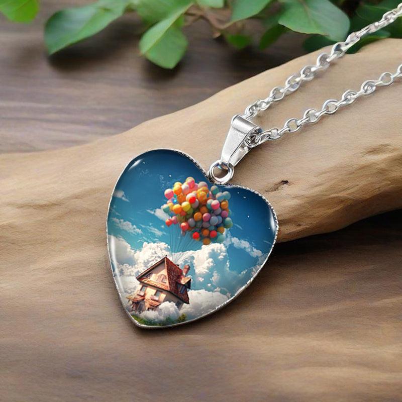 This pendant necklace features a charming design of a balloon house with a heart shape, perfect for men's jewelry collection.