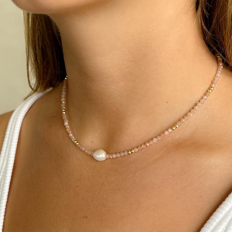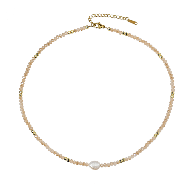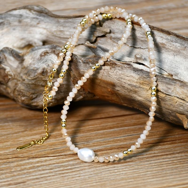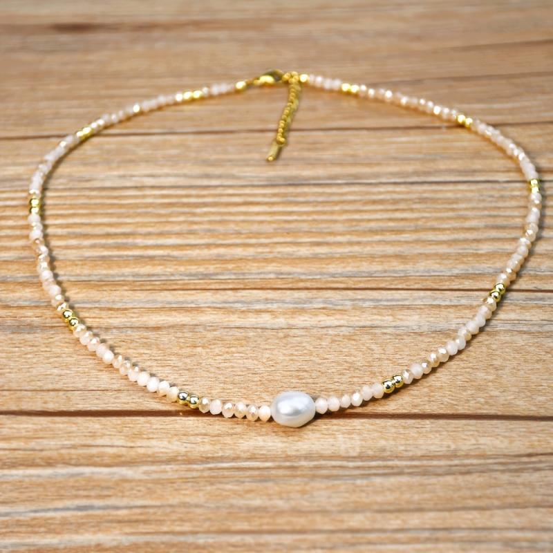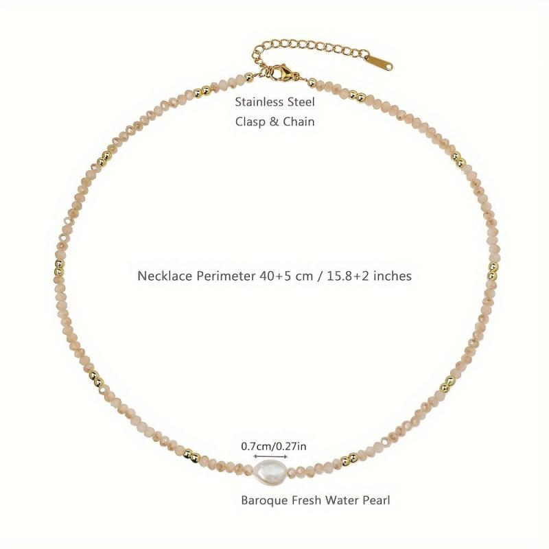 Enhance your style with this elegant choker necklace featuring natural freshwater pearls and faceted glass beads. Perfect for daily wear or special occasions, makes a great gift for mothers.