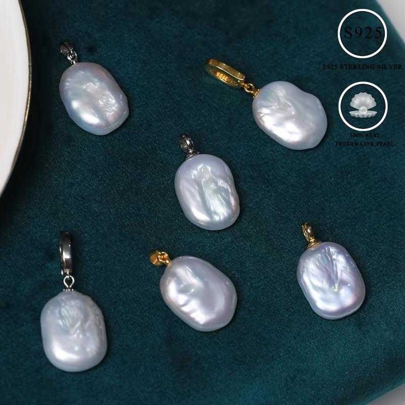 Elegant baroque pearl pendant enhancer with 18K golden plated S925 sterling silver bail. Perfect gift for women who appreciate classic style and natural beauty.