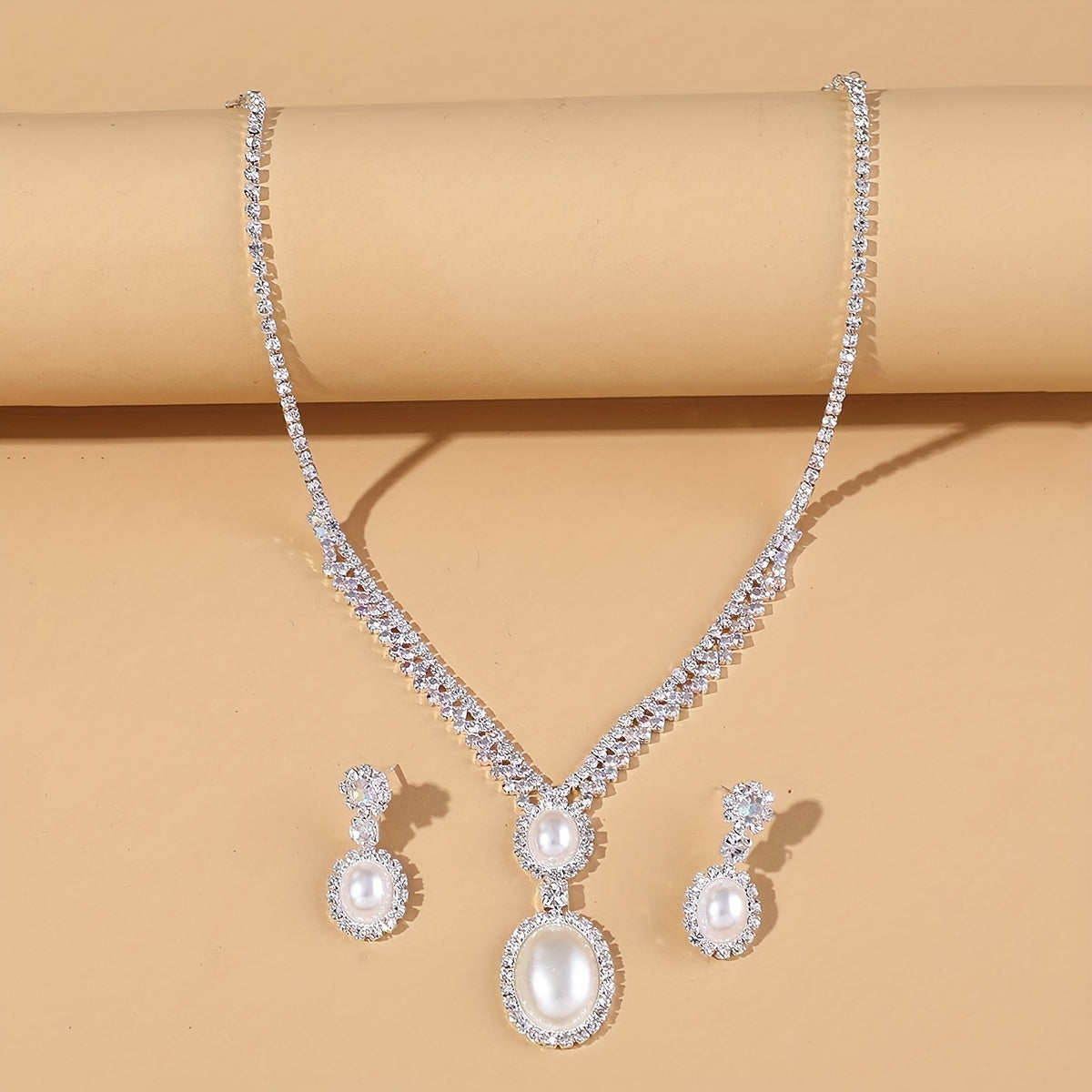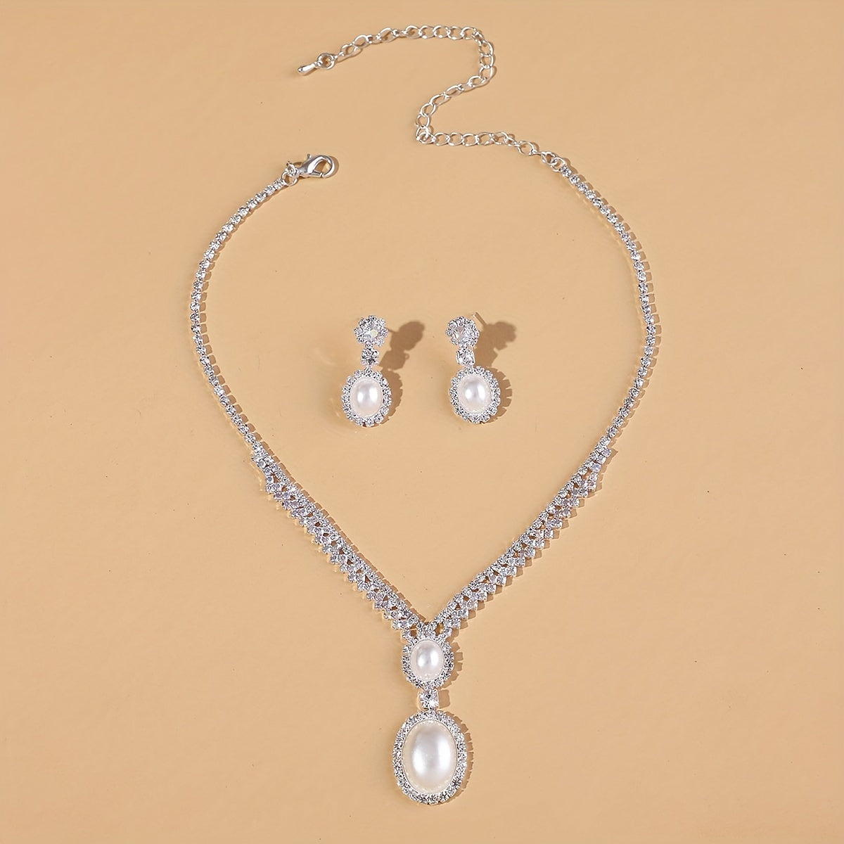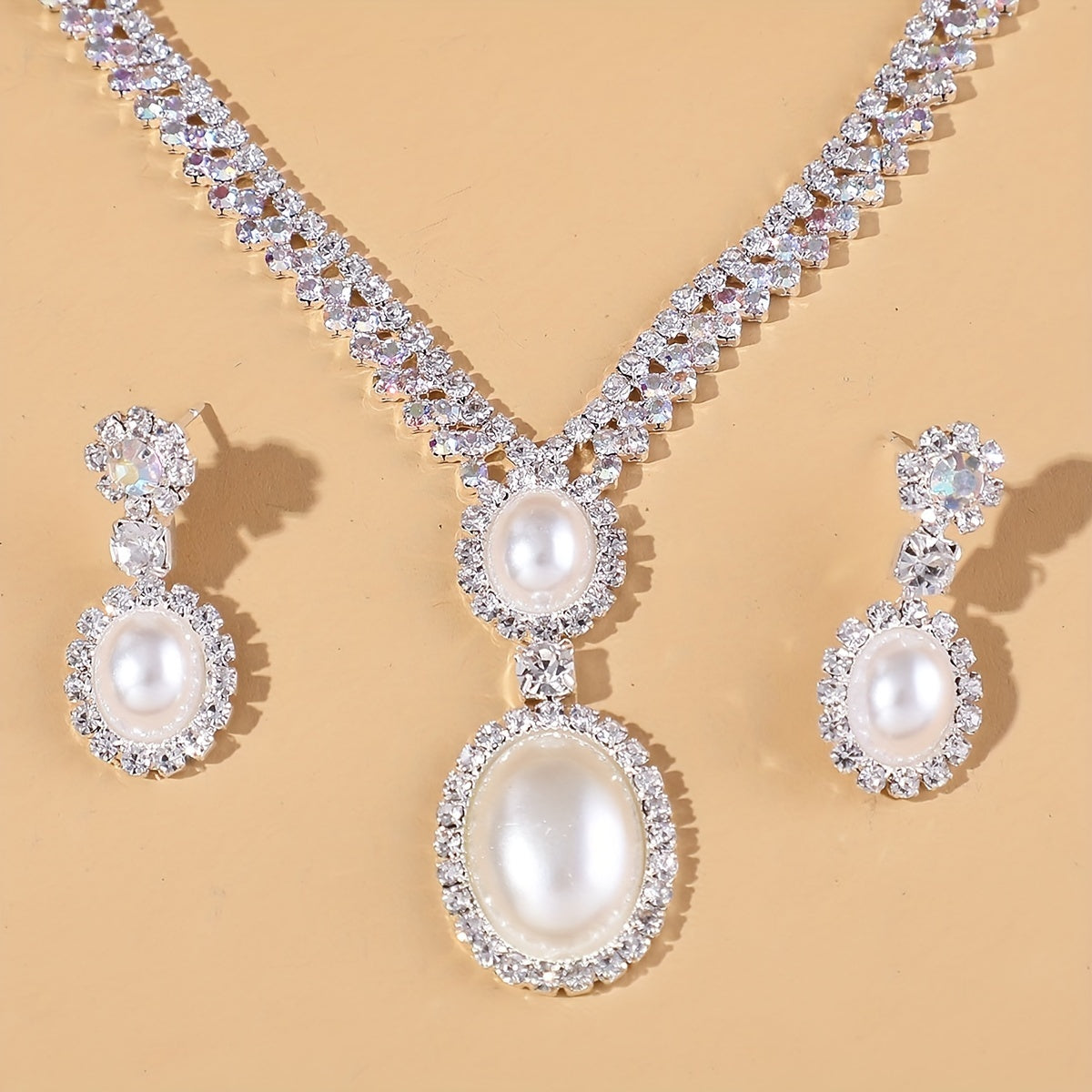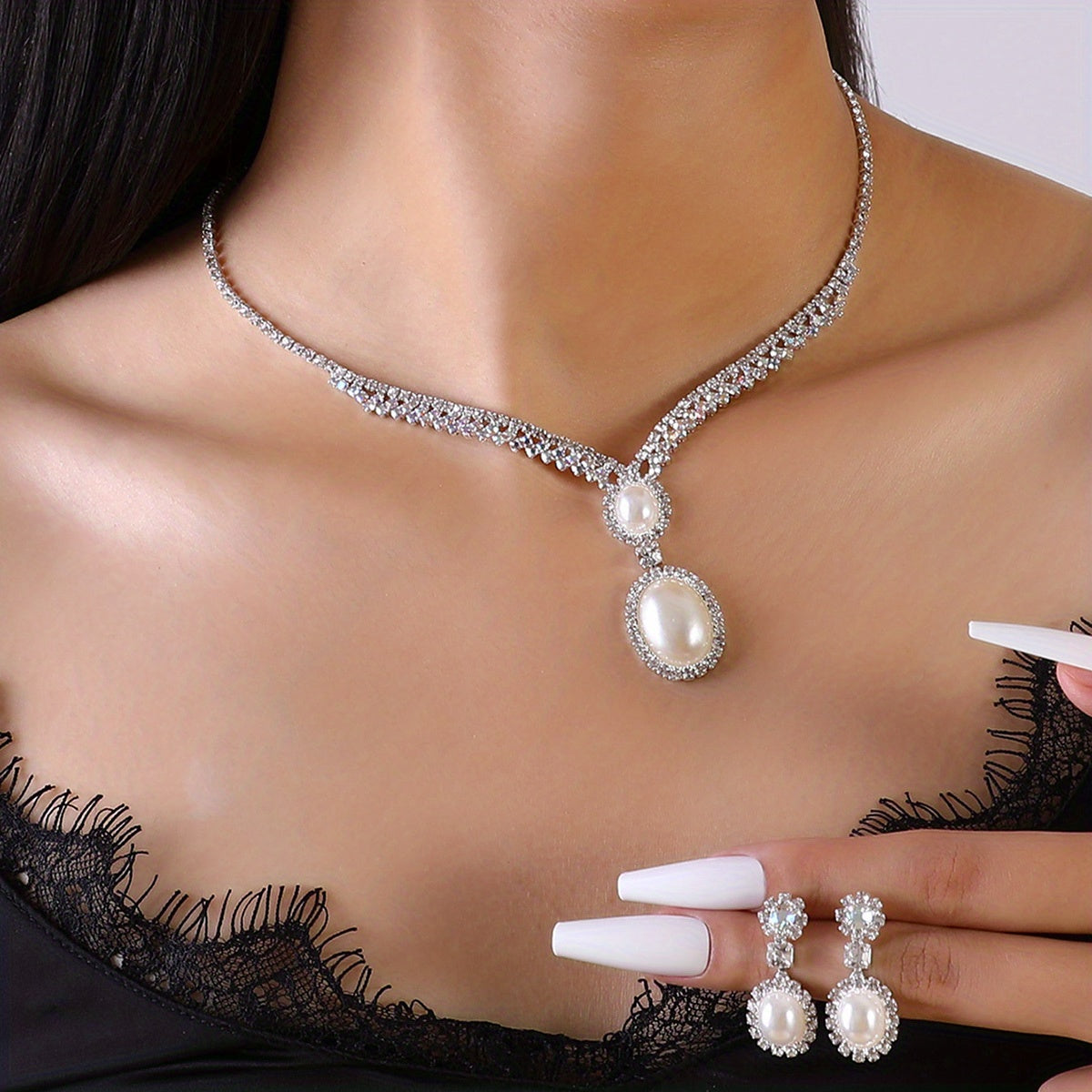 Elegant and stylish faux pearl pendant necklace and earring set. Perfect for parties and birthdays.