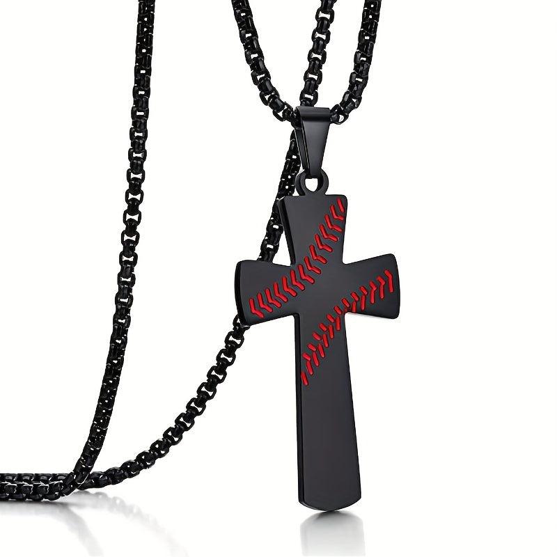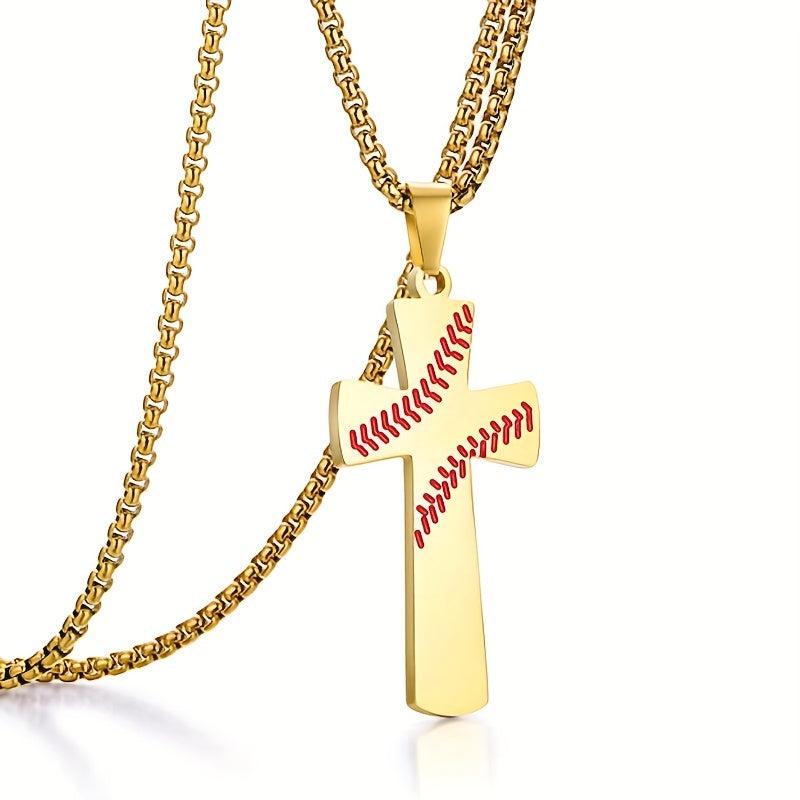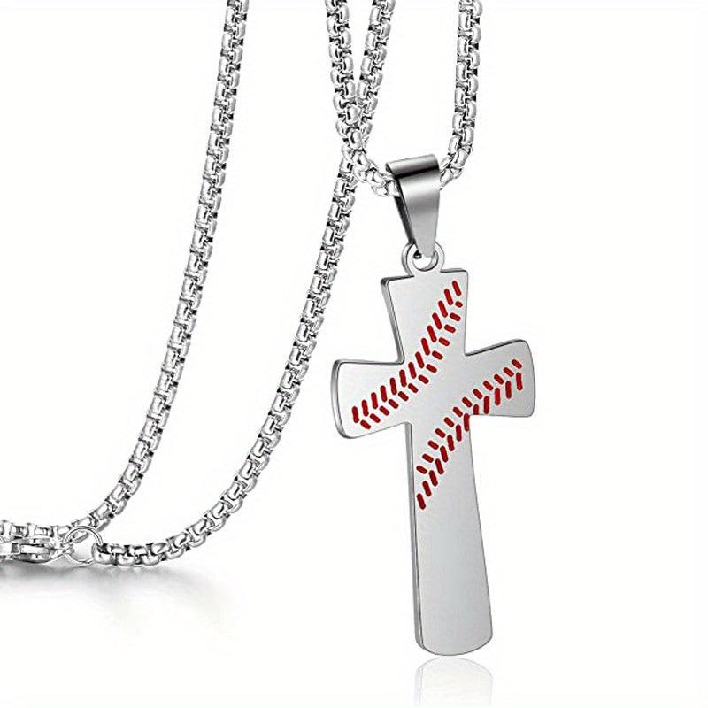 This creative baseball cross pendant necklace is the perfect accessory for baseball fans. It's a great gift option for holiday parties or special occasions.