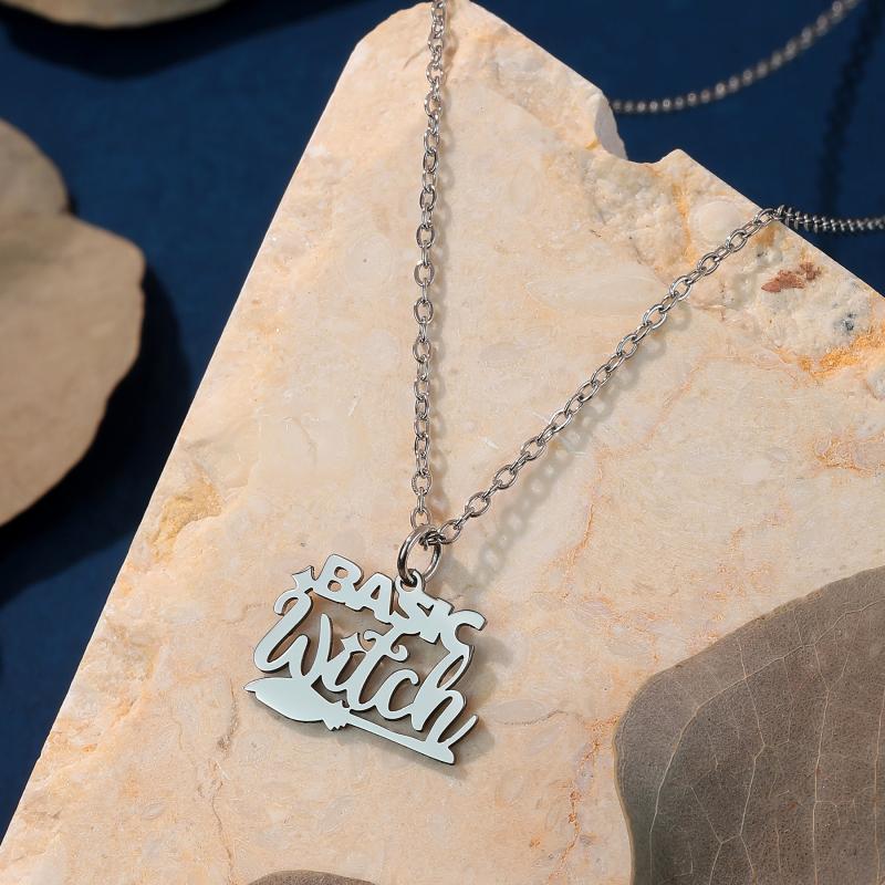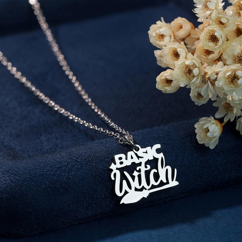 This witch broom necklace is the perfect accessory for Halloween, featuring a stainless steel chain with an engraved broomstick pendant. Ideal for women and men.