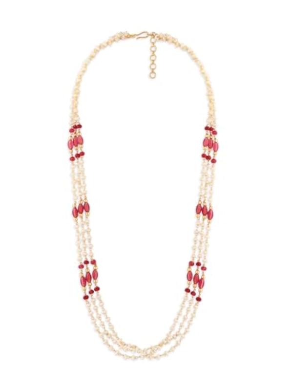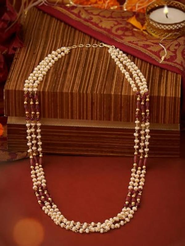 Elegant multistrand necklace featuring intricate bead embellishments. Perfect fusion wear accessory for women.