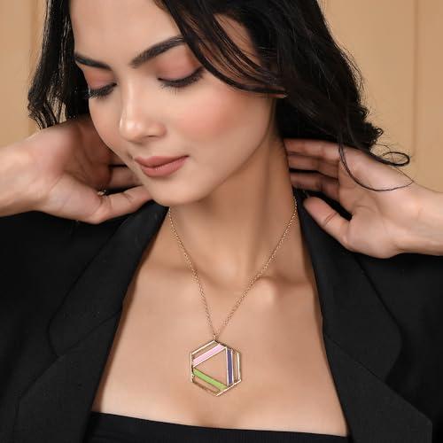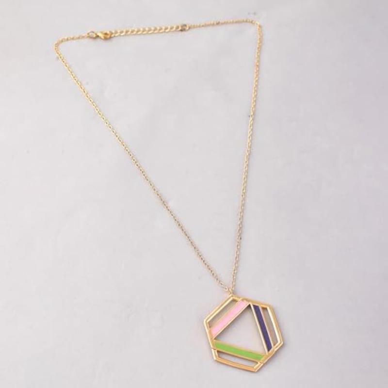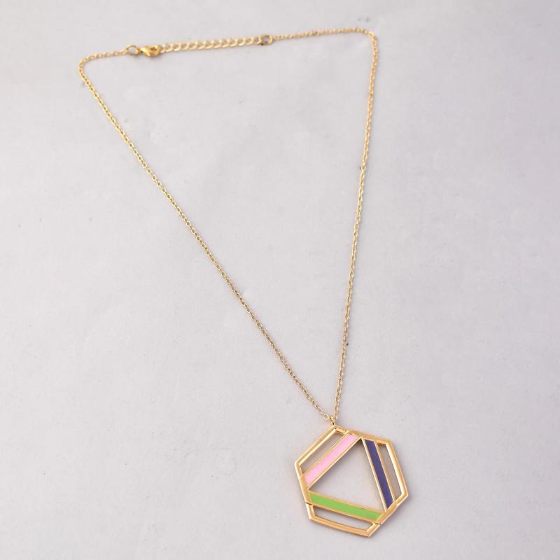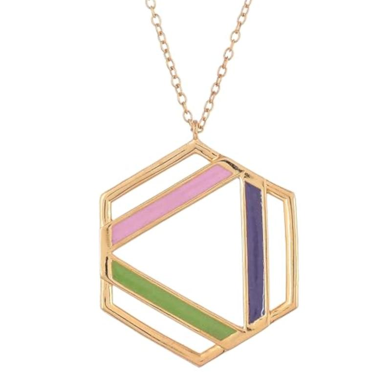 Elegant enameled pendant necklace inspired by the benzene structure, perfect for adding a touch of chemistry to your outfit.