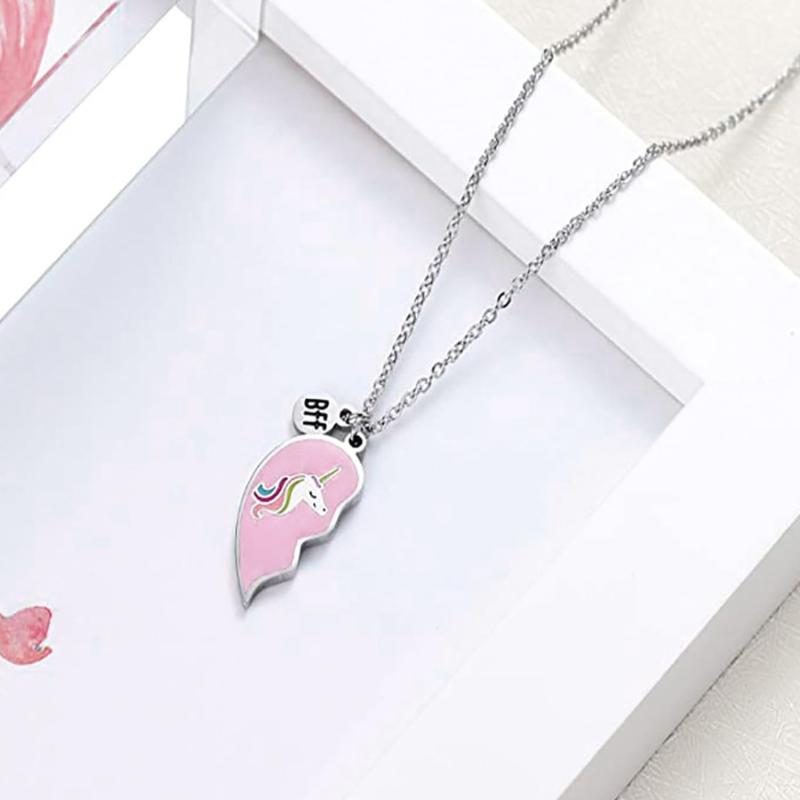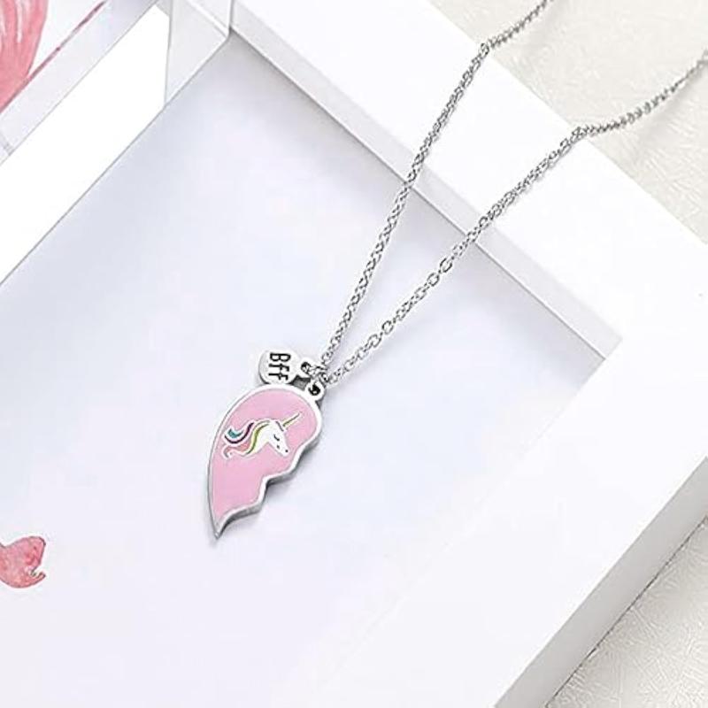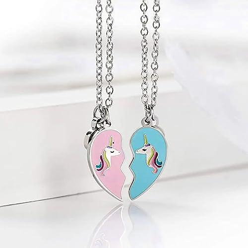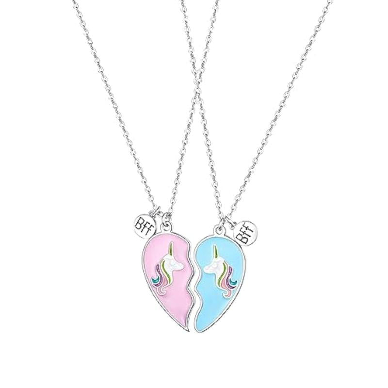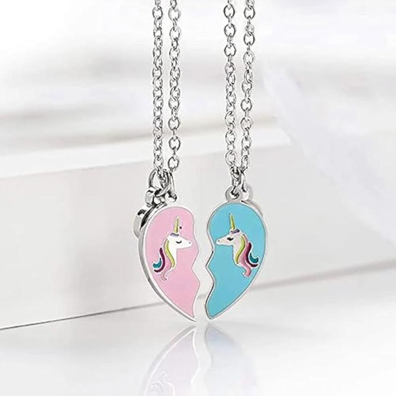 Get this 2-piece set of pendant and charm necklaces perfect for best friends with a heart and unicorn design. Ideal for birthdays and special occasions.