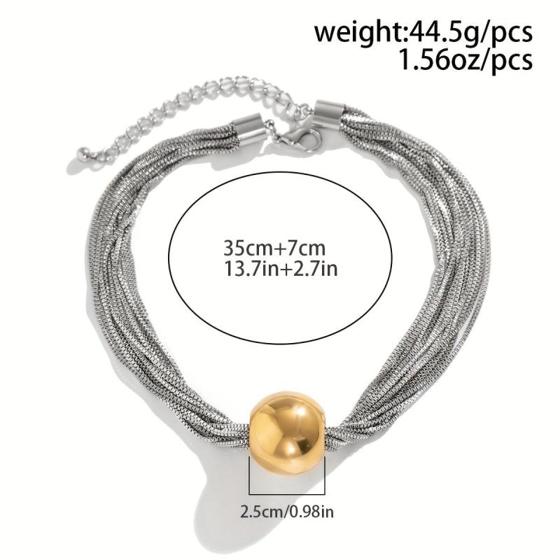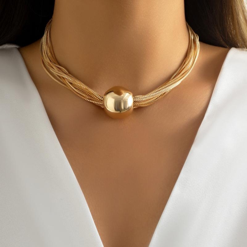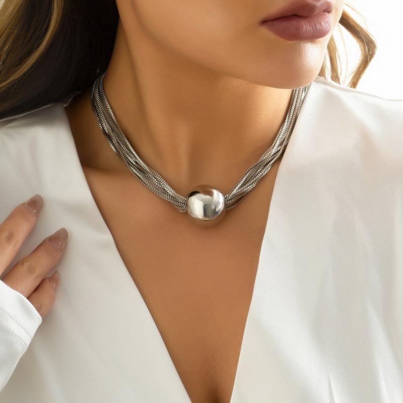 Elegant and stylish necklace featuring a big ball pendant on a twisted chain design. Perfect for adding a touch of sophistication to any outfit.
