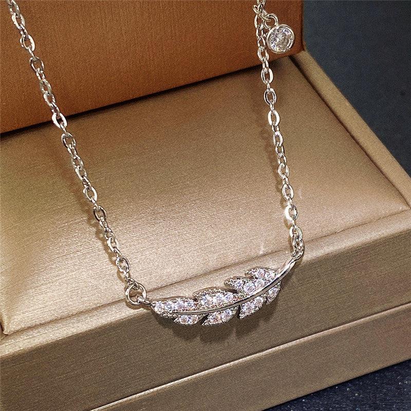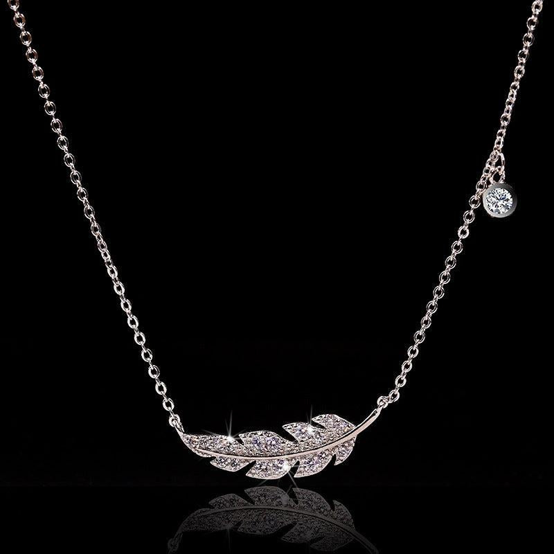This pendant necklace featuring a synthetic zirconia feather is a perfect accessory for casual attire, holidays, and graduation. It makes a great graduation gift.