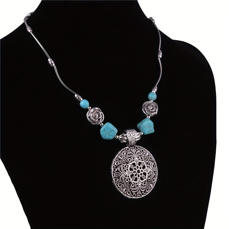 Add a touch of bohemian charm to your outfit with this natural turquoise pendant necklace. Perfect for daily wear, vacation, or as a holiday gift.