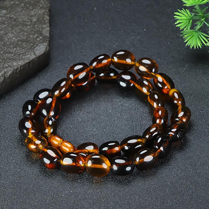 Elevate your casual attire with this bohemian amber beaded necklace featuring large round tubular beads and a delicate tree branch pendant. The combination of brown and amber beads adds a touch of earthy charm to your look.