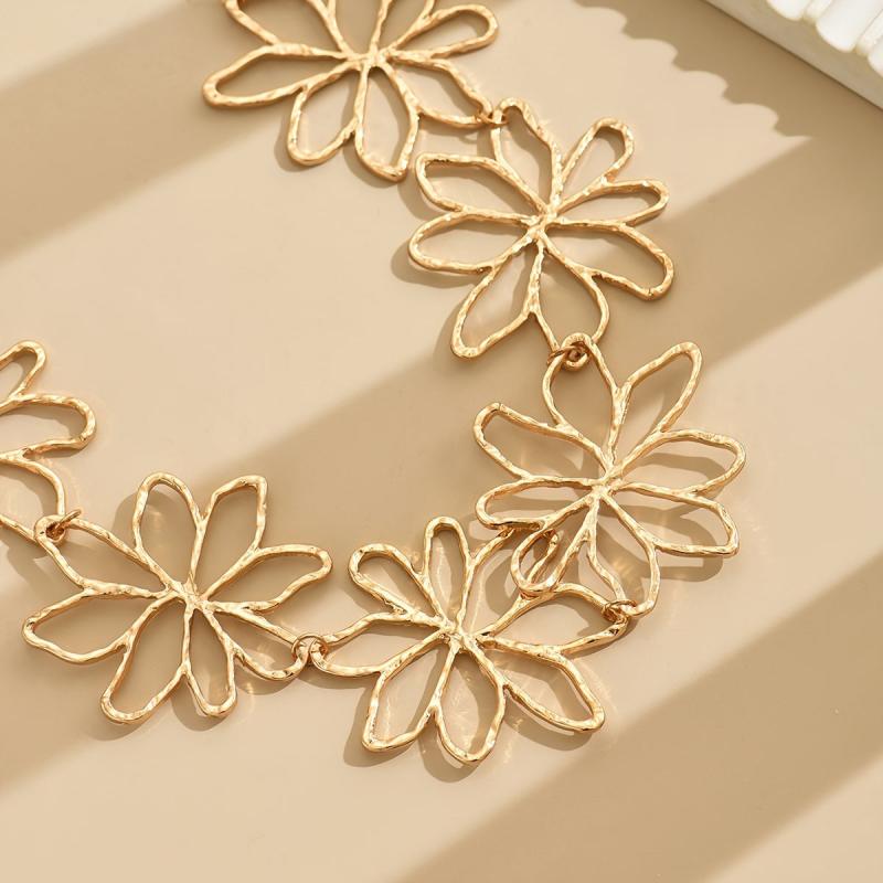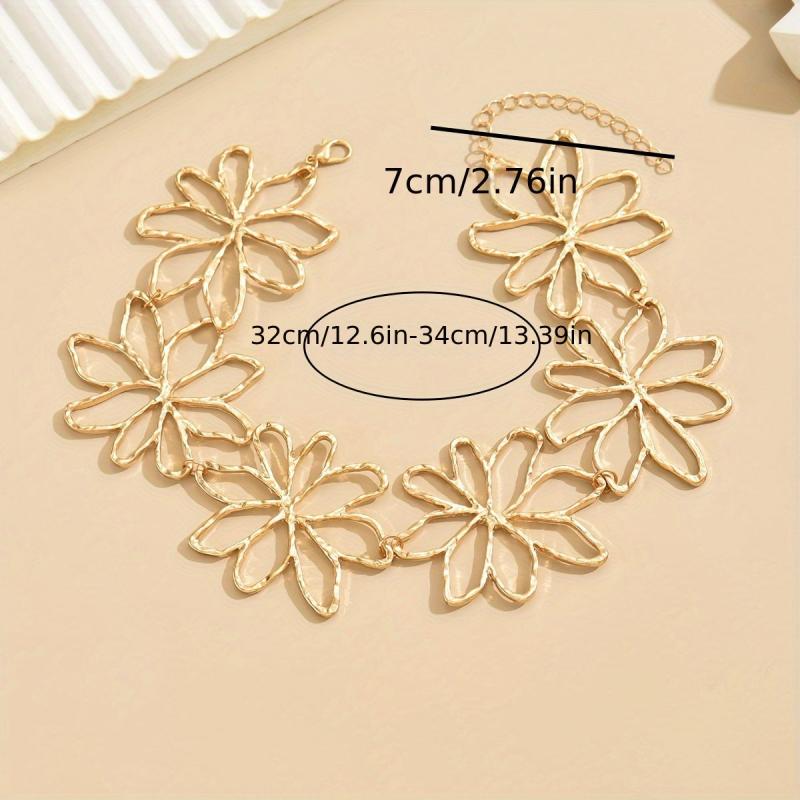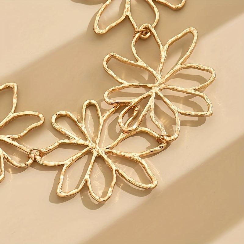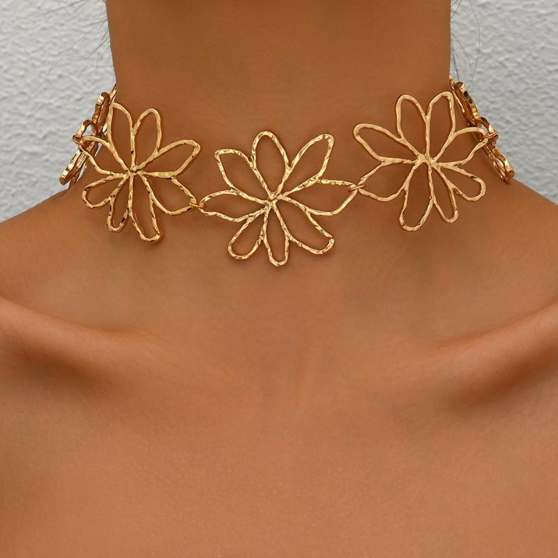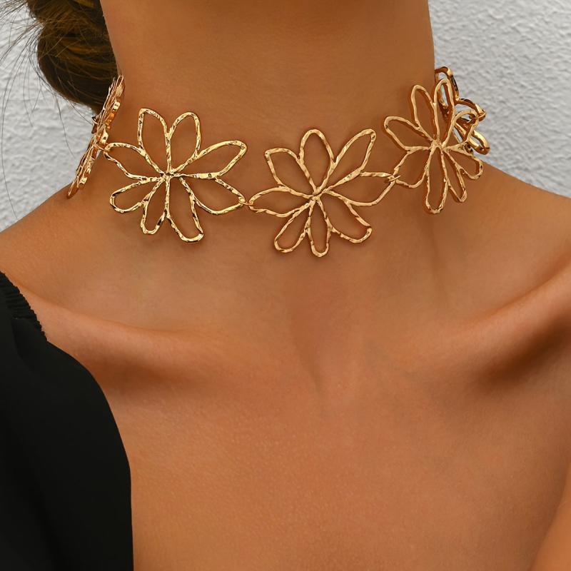 Add a touch of vintage bohemian charm with this choker necklace featuring an irregular floral cutout design in a golden tone. Perfect for music festivals and casual attire year-round.