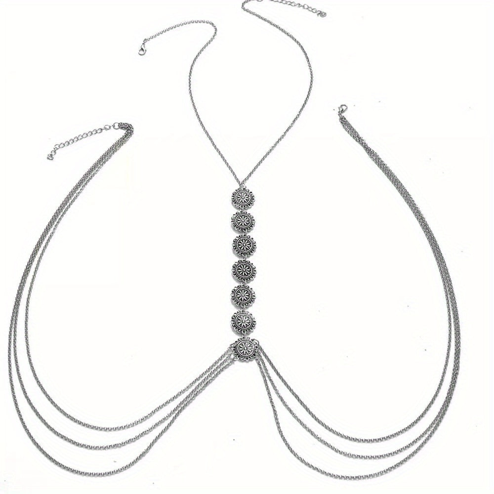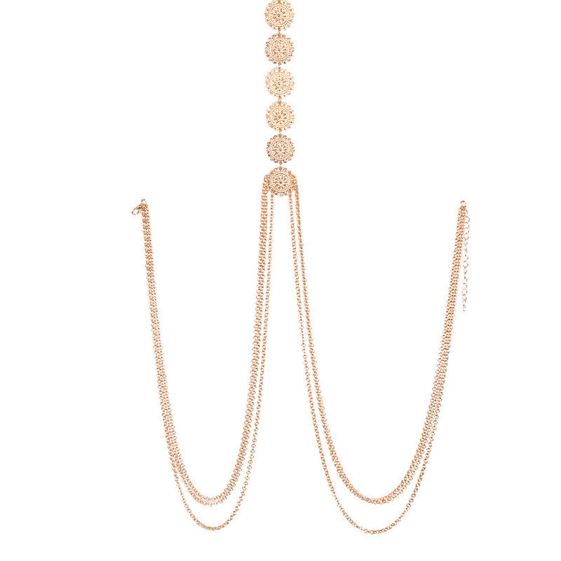 Elevate your beach look with this stunning Bohemian Coin Body Chain that adds a touch of glamour and style. This body chain features delicate coins and intricate design to enhance your outfit.