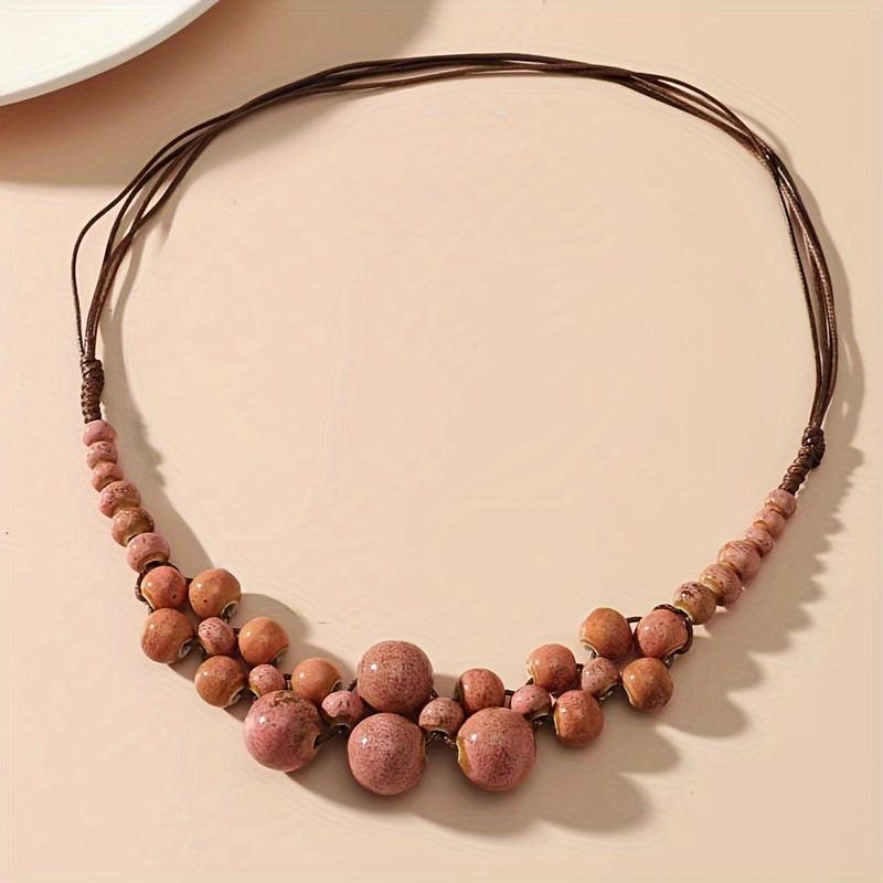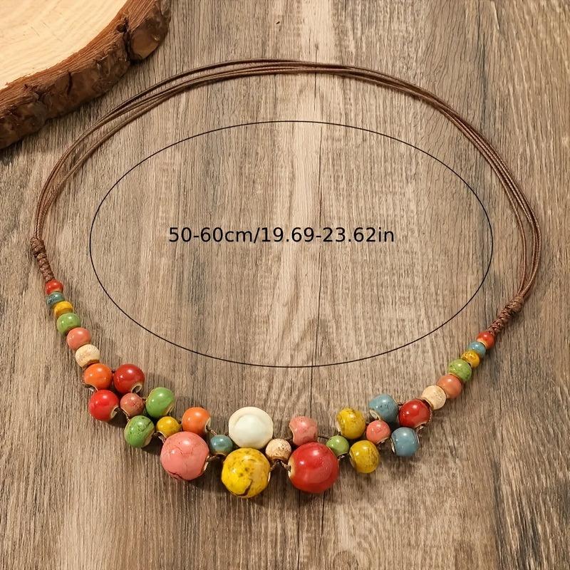 This adjustable necklace features multicolor glossy beads with intricate patterns, perfect for everyday casual wear, parties, and vacations.