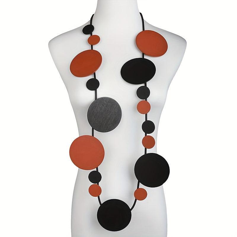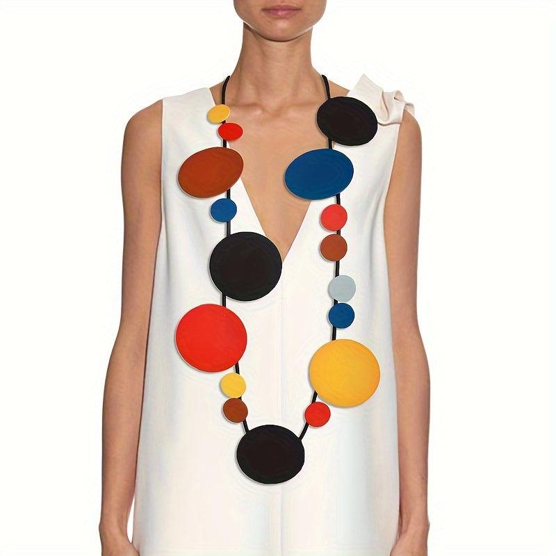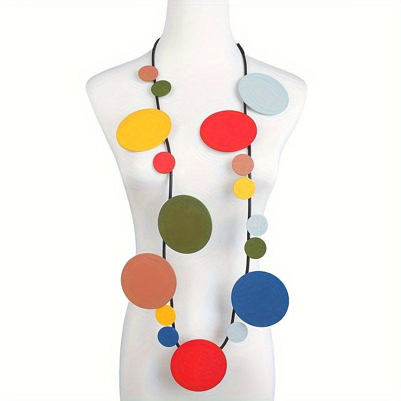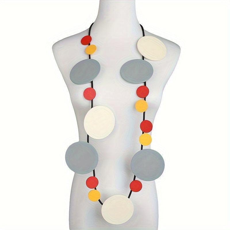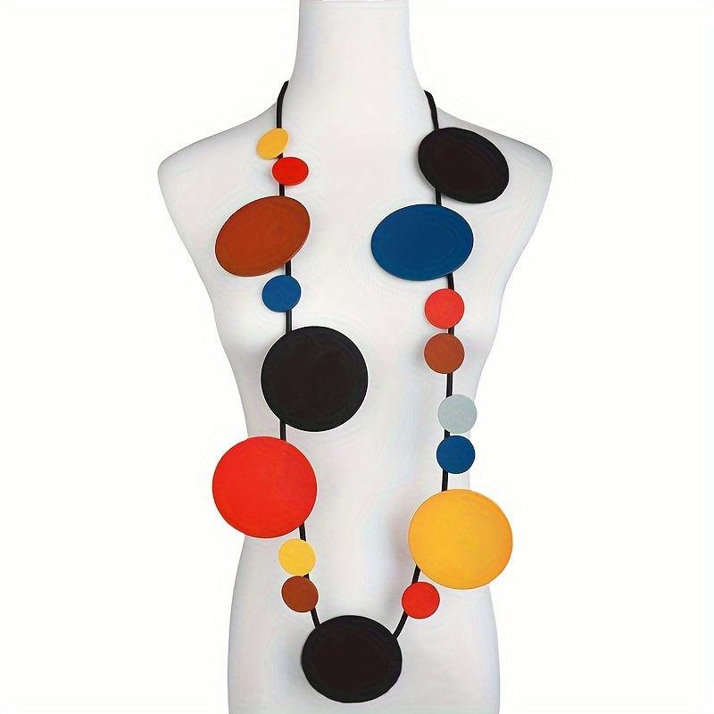 Add a vibrant touch to your outfit with this lightweight bohemian ethnic long necklace. It features colorful beads and a stylish silicone construction.