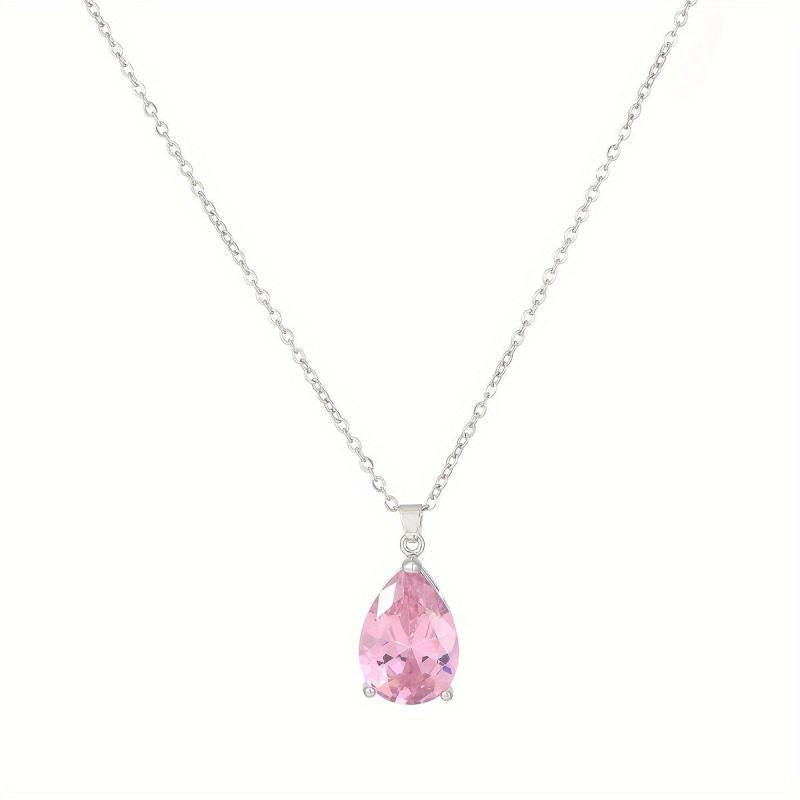 Add a touch of elegance to your outfit with this bohemian pink teardrop pendant necklace. The delicate chain features marquise cut stones and is perfect for layering or as a standalone piece. Ideal for parties and everyday wear, it makes a great gift for women.