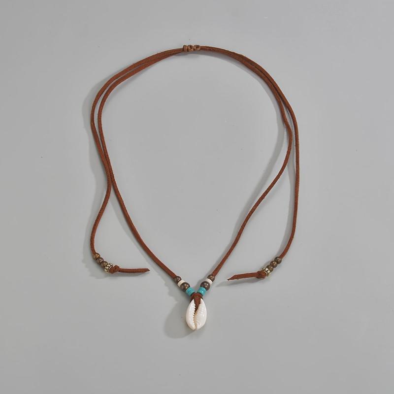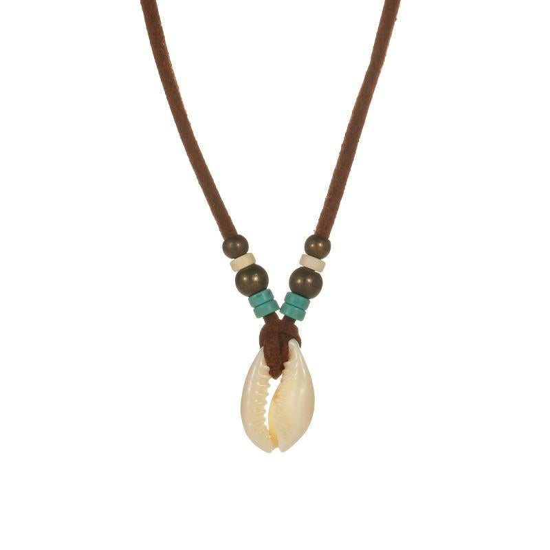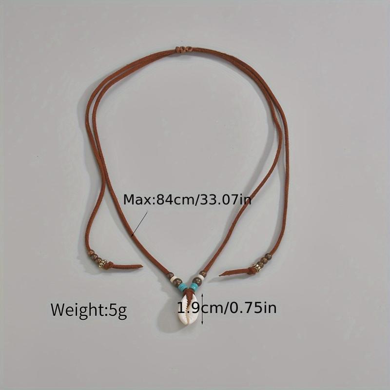 Add a touch of boho chic to your look with this natural shell pendant necklace featuring turquoise beads and an adjustable suede cord. Suitable for men and women, perfect for stylish casual attire, parties, or as a thoughtful gift.