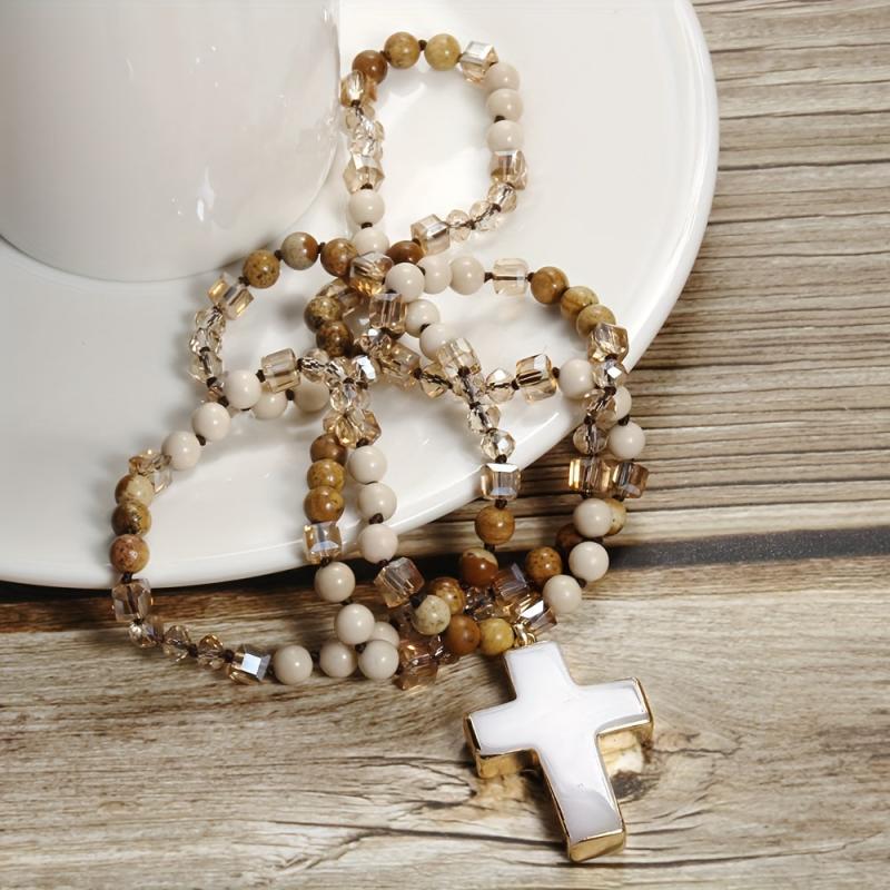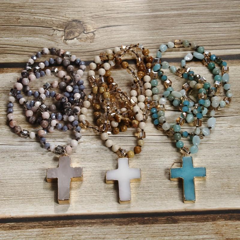Elevate your spring and summer casual attire with this bohemian natural stone and glass pendant necklace. Layered with multicolor beads, this necklace is perfect for everyday wear or as a thoughtful Mother's Day gift.