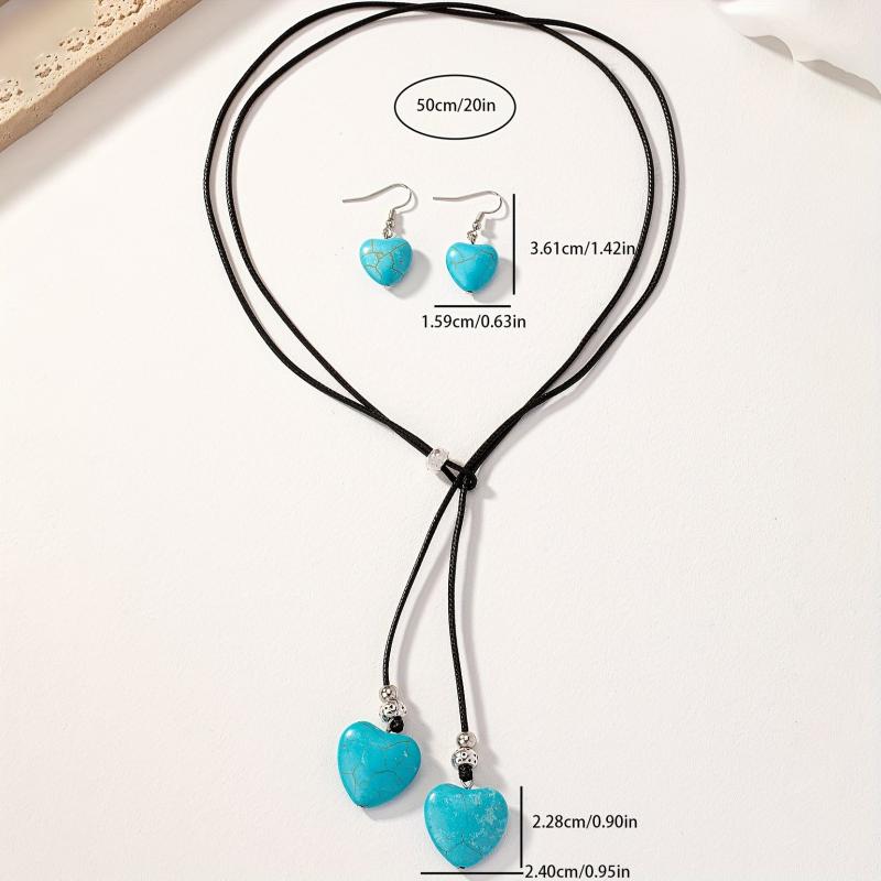 Elegant vintage set with adjustable length necklace and heart-shaped lapis lazuli stones. Perfect for boho-chic style.