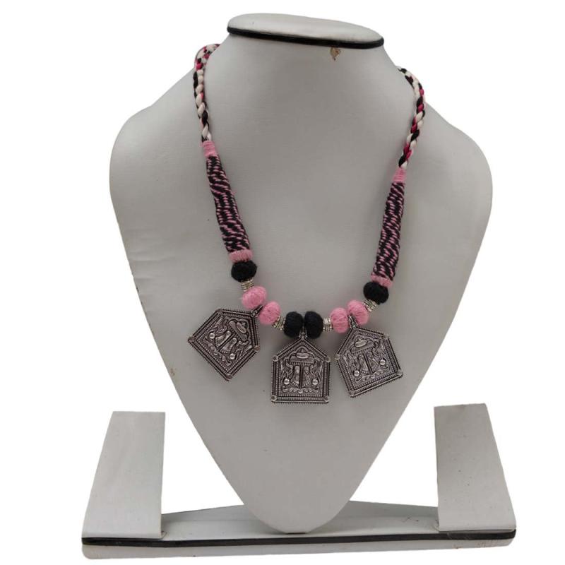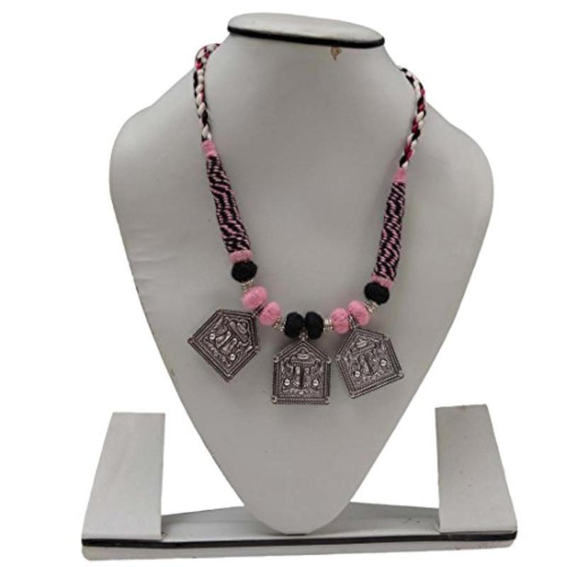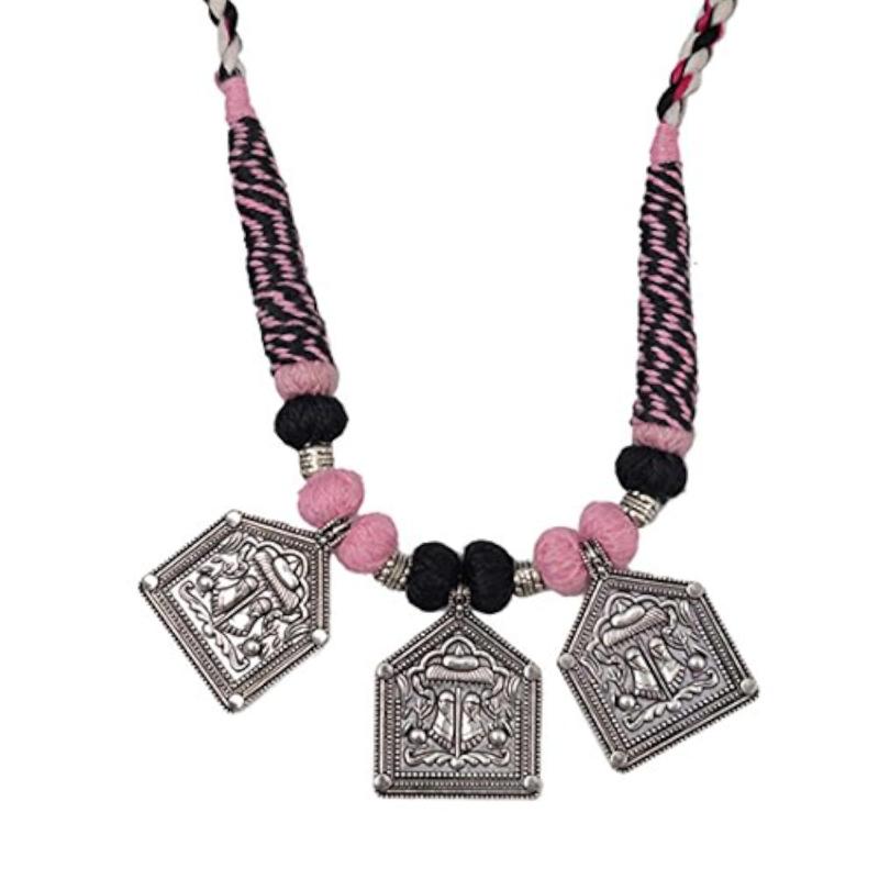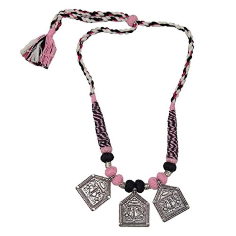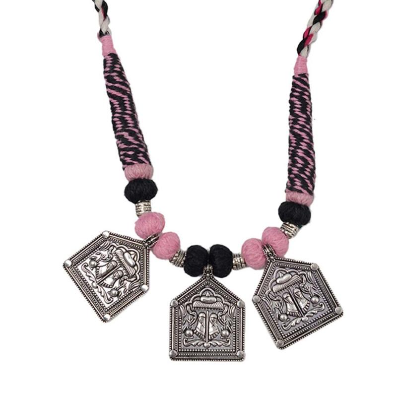 Add a touch of bohemian flair to your outfit with this rope necklace featuring a gypsy tribal charm pendant.