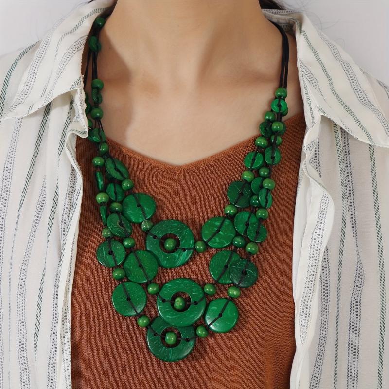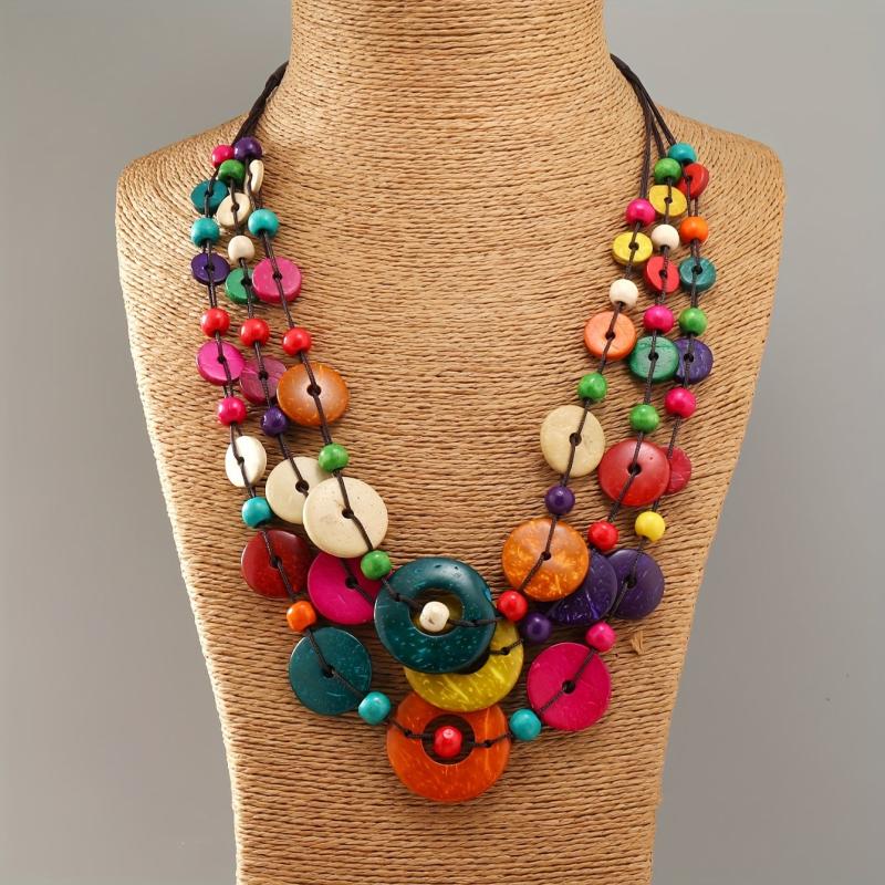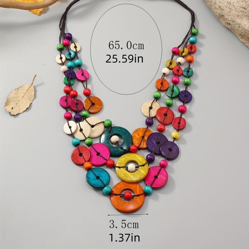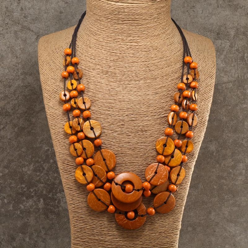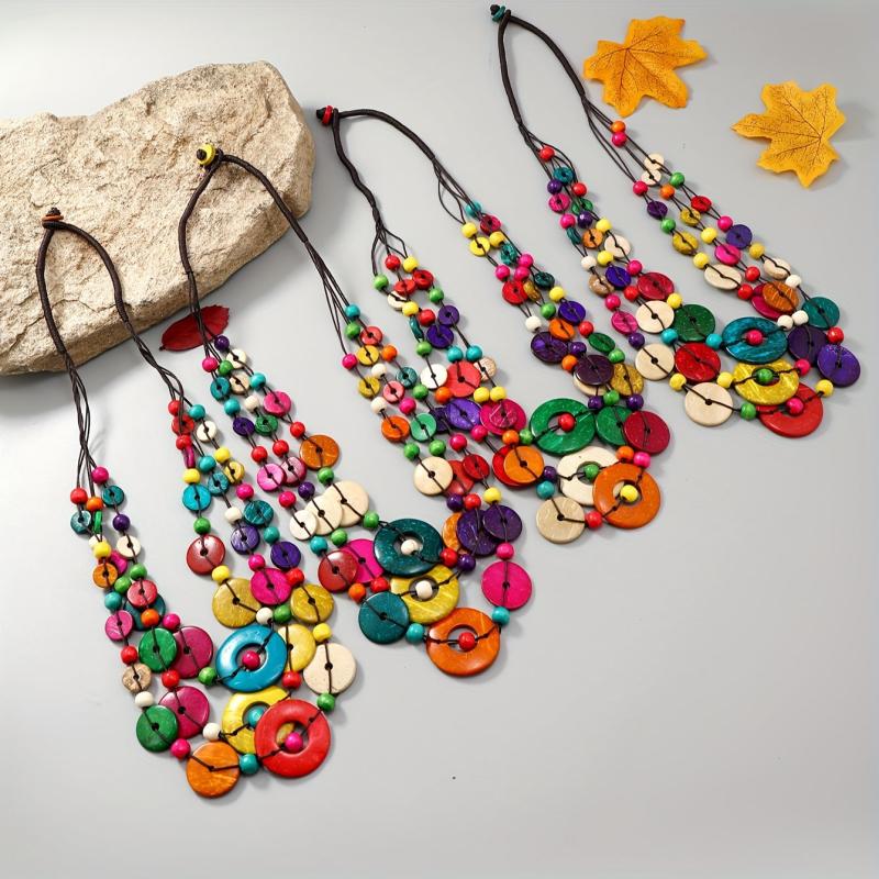 Handcrafted necklace made from coconut shell with a bohemian style design. Perfect for daily wear and music occasions, suitable for all seasons.
