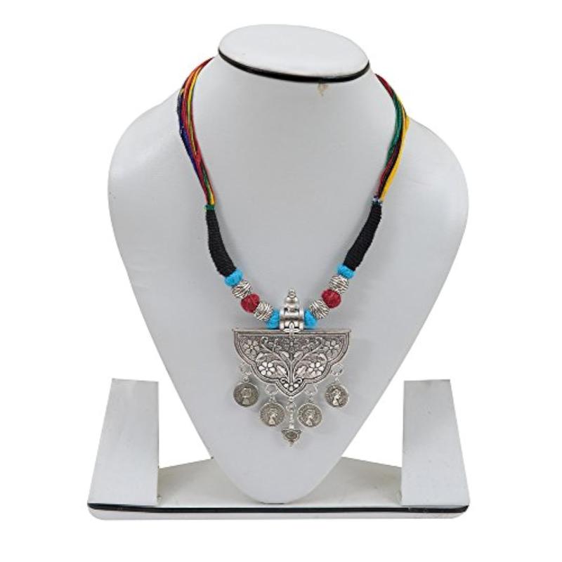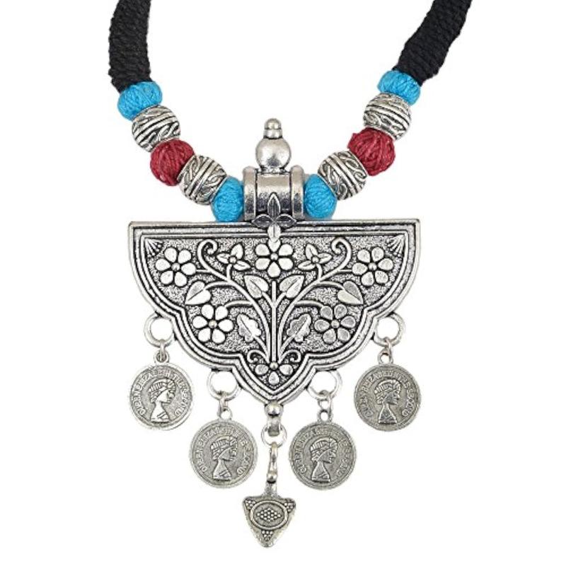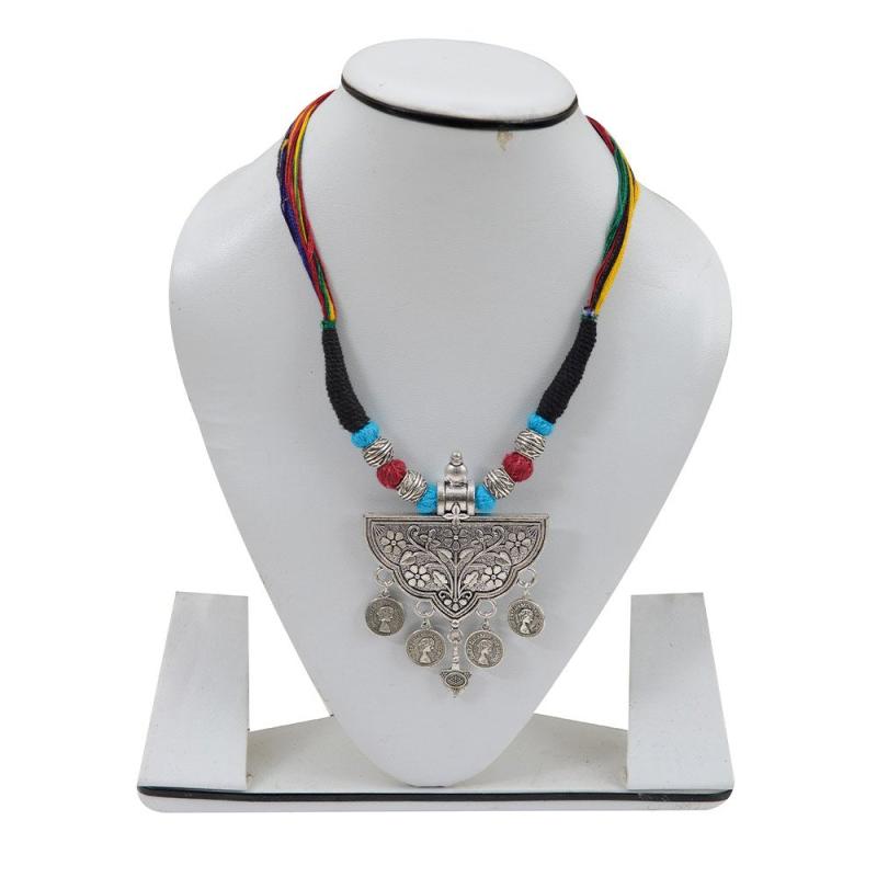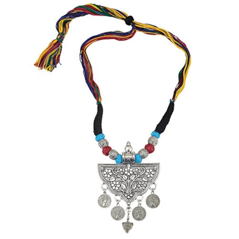 Add a touch of boho-chic to your outfit with this stunning tribal necklace featuring vibrant beads and a stylish tassel. Perfect for any occasion.