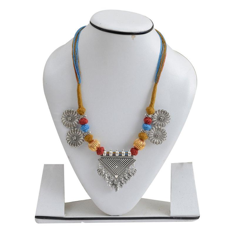 Elevate your style with this handmade bohemian tribal necklace featuring a unique tassel pendant. Perfect for adding a touch of exotic flair to your look.
