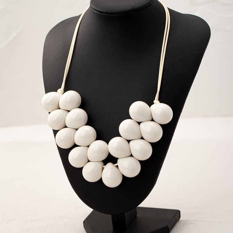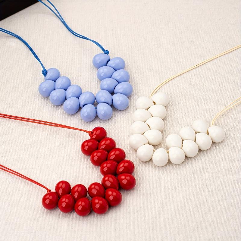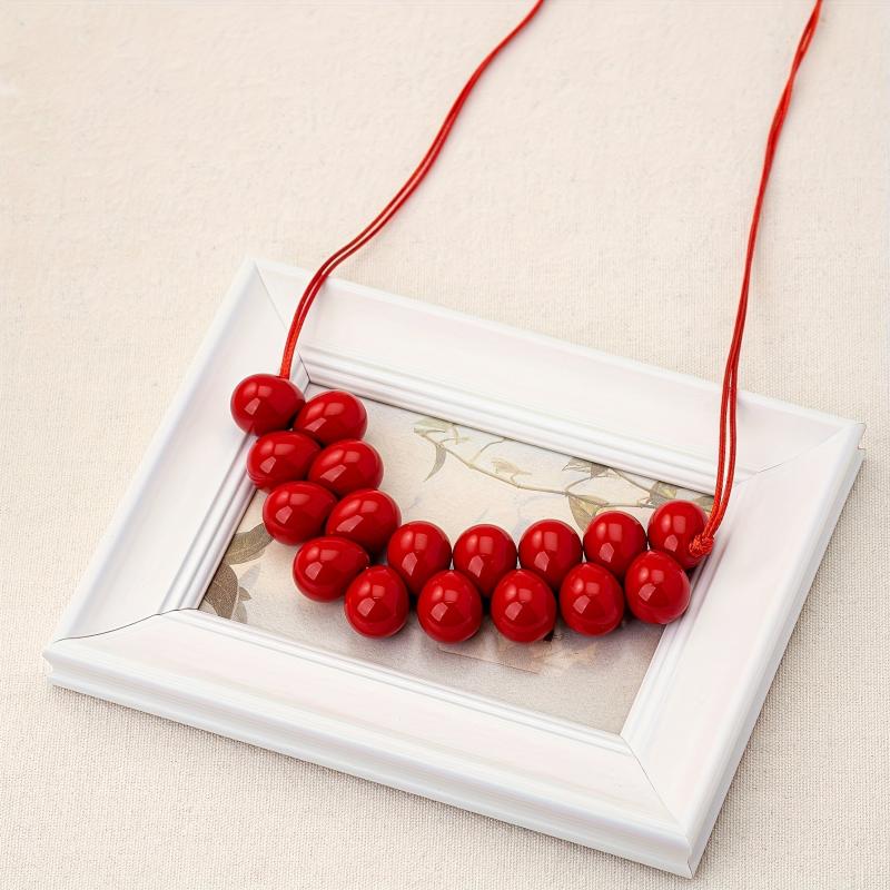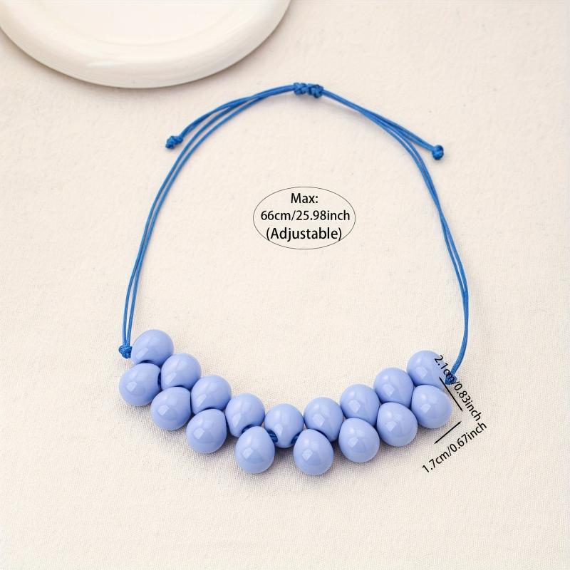 This vintage-inspired necklace features acrylic beads and dangling teardrop pendants. It is adjustable and perfect for daily wear or holiday outfits.