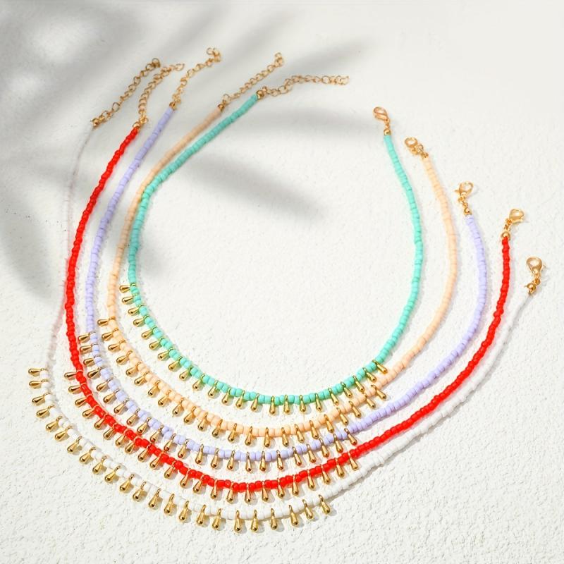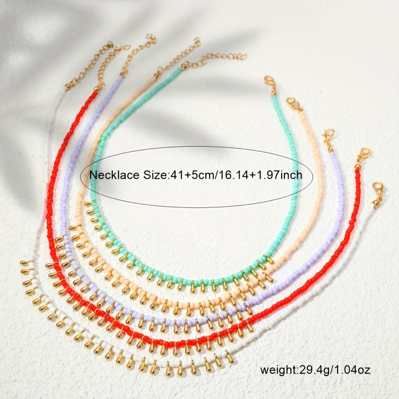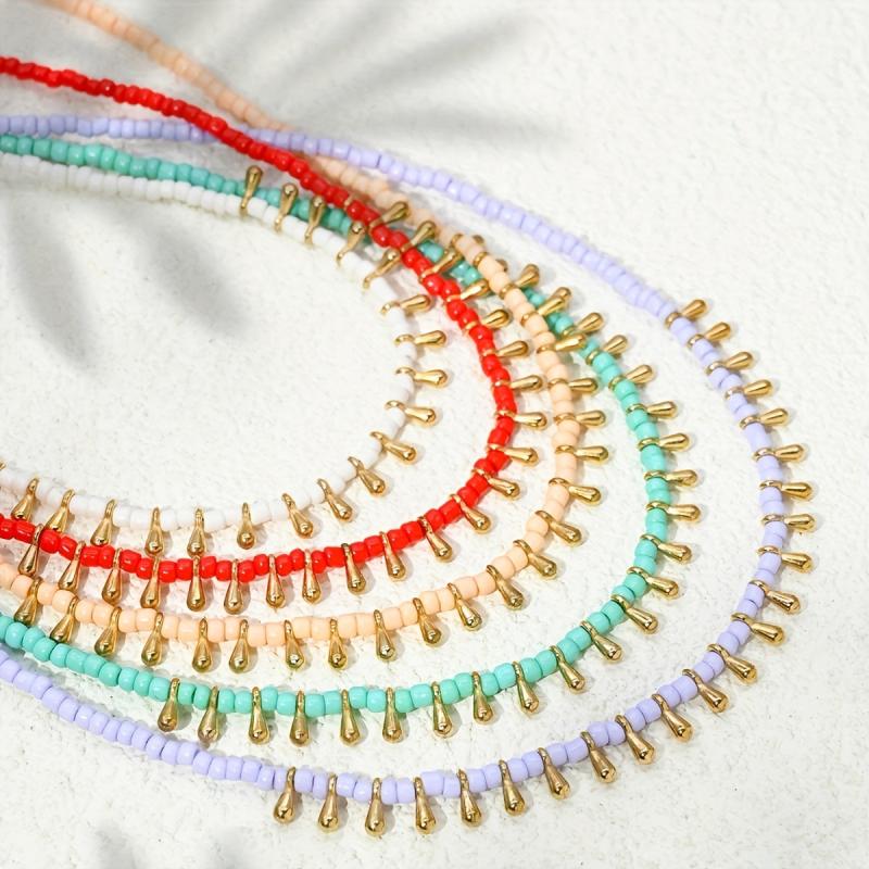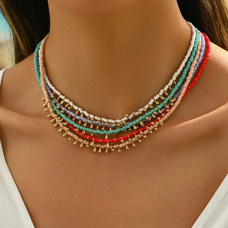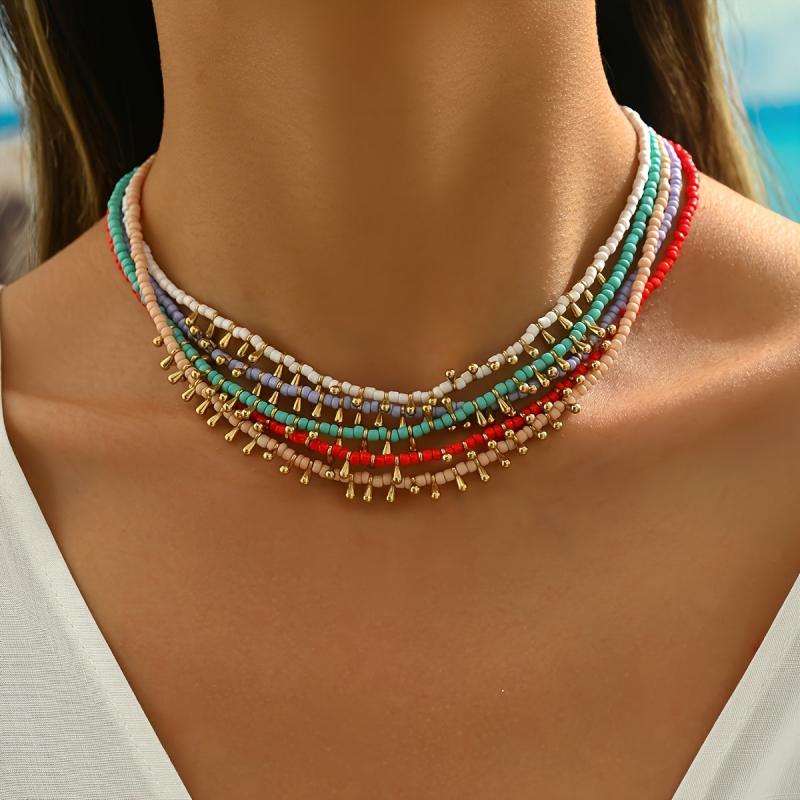 Elevate your vacation and casual outfits with these colorful beaded necklaces. Handwoven for a unique touch, these versatile pieces are perfect for spring and summer.