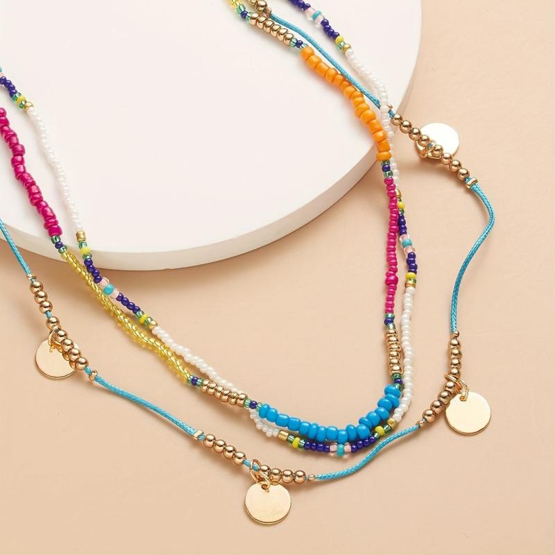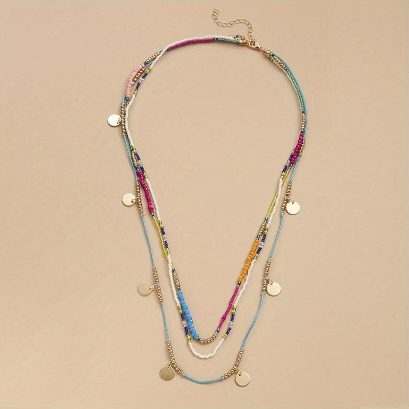 Elevate your bohemian style with this multilayer beaded necklace featuring vibrant beads. Perfect as a gift or to enhance your neck accessories.