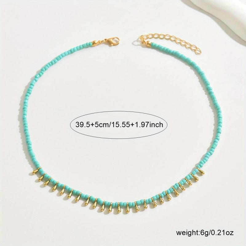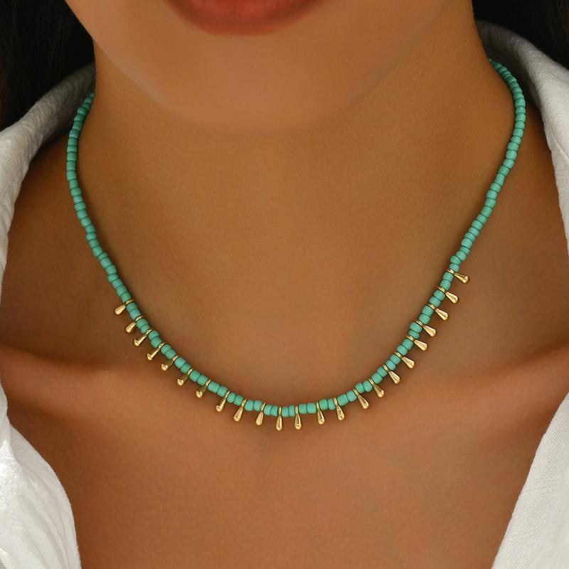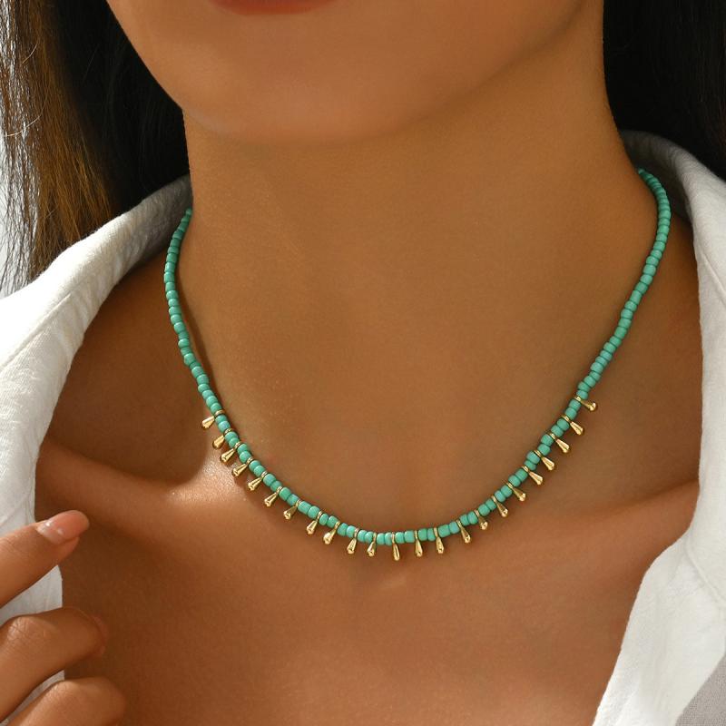 Add a touch of Bohemian flair to your outfit with this vintage-style beaded necklace. Made from high-quality glass beads, this necklace is perfect for all seasons and occasions.