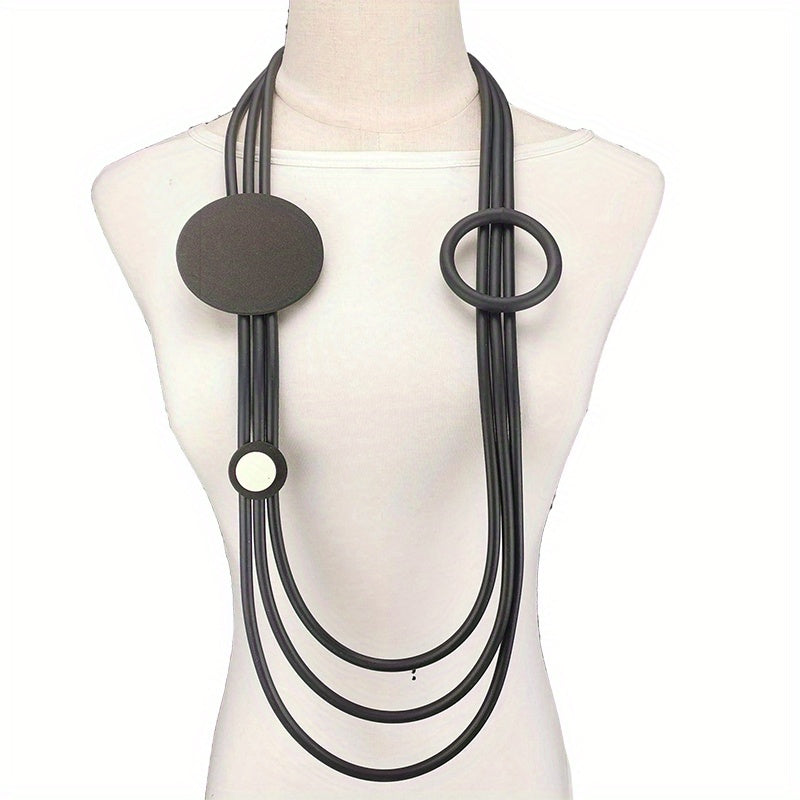 Elevate your bohemian look with this stylish coil style rubber necklace. Perfect for adding a touch of boho charm to your outfit.